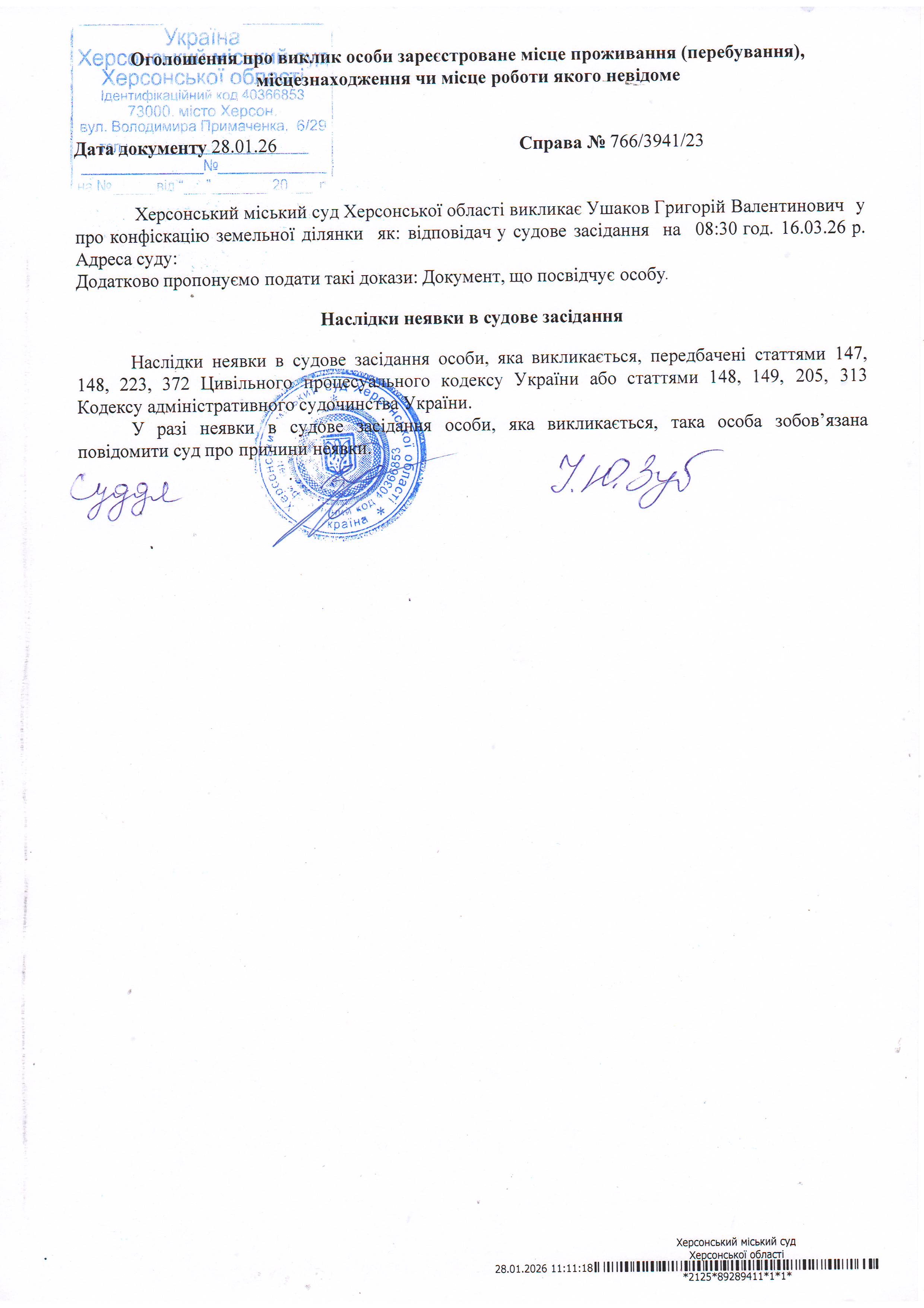 ОГОЛОШЕННЯ ПРО ВИКЛИК ДО СУДУ