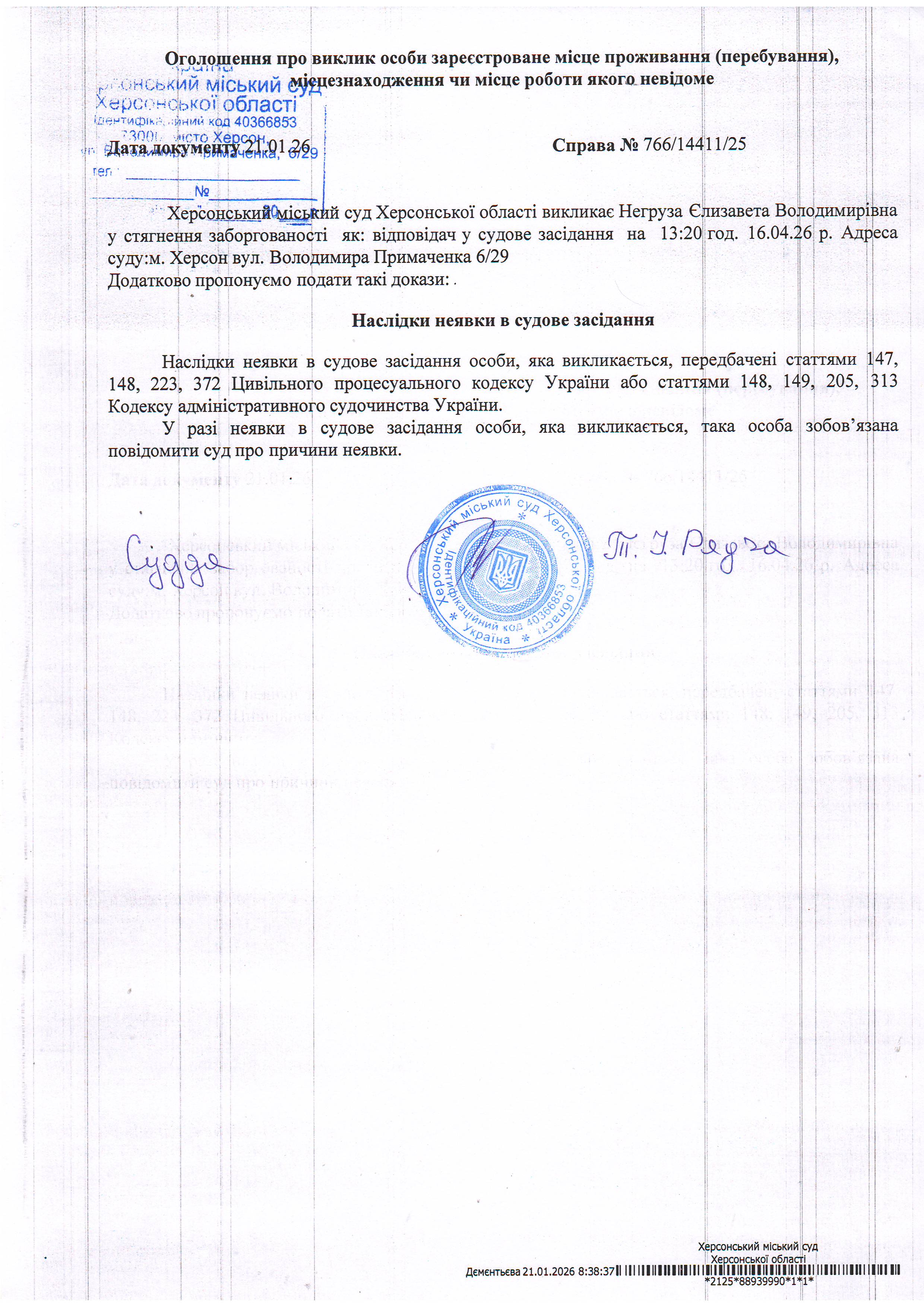 Оголошення про виклик особи в суд та повідомлення про судове рішення