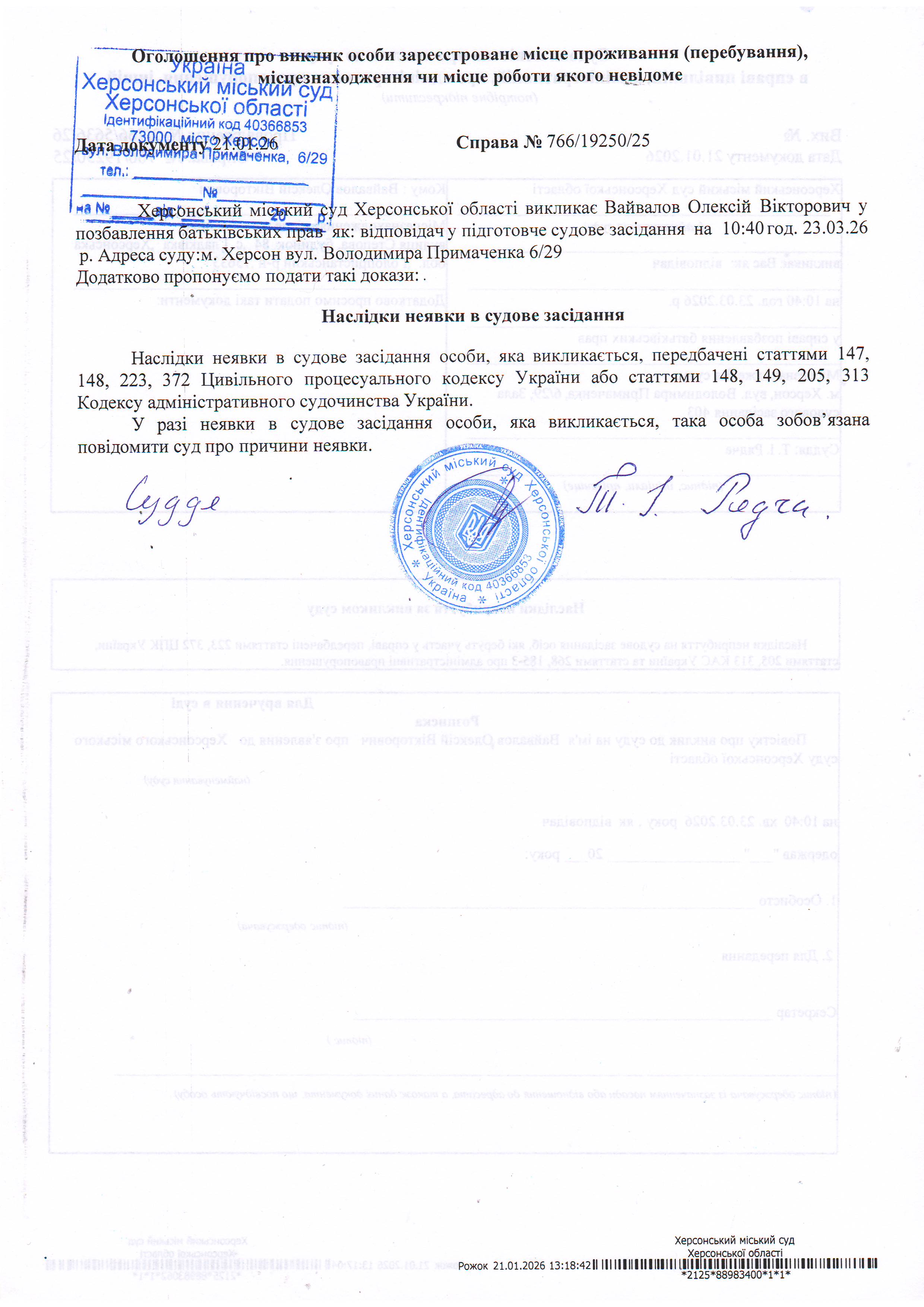 ОГОЛОШЕННЯ ПРО ВИКЛИК ДО СУДУ