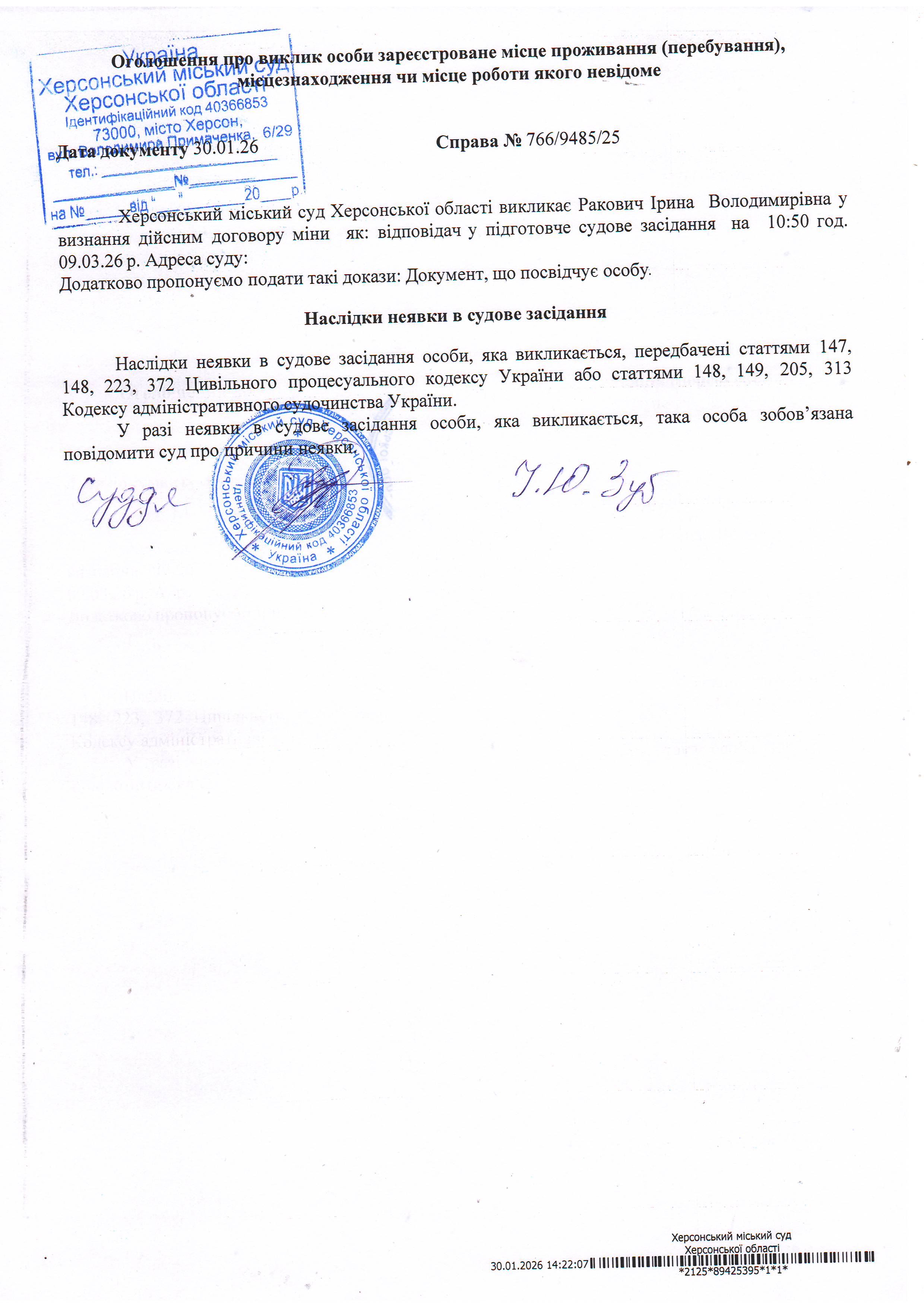 Оголошення про виклик особи в суд та повідомлення про судове рішення