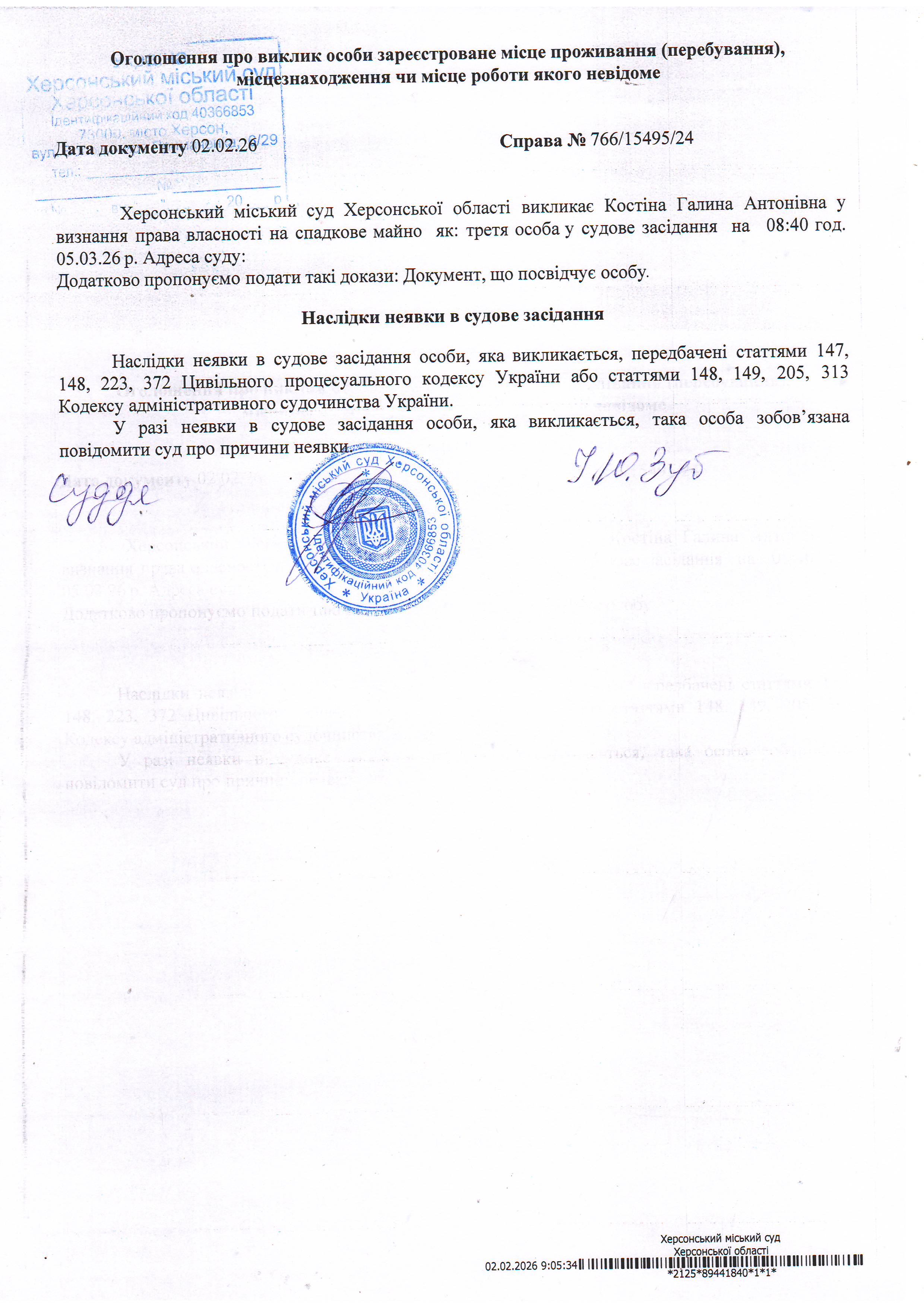 ОГОЛОШЕННЯ ПРО ВИКЛИК ДО СУДУ