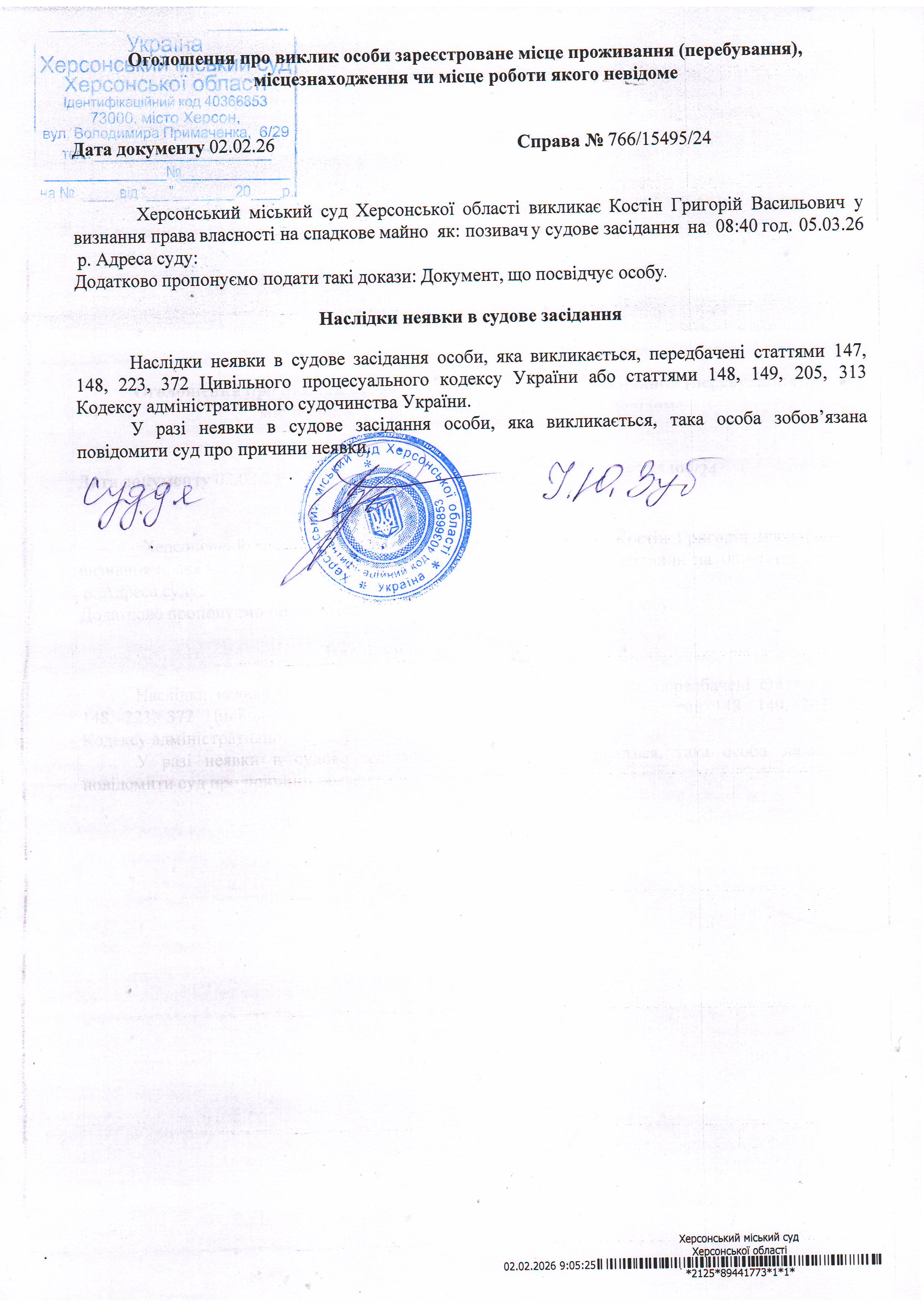 Оголошення про виклик особи в суд та повідомлення про судове рішення