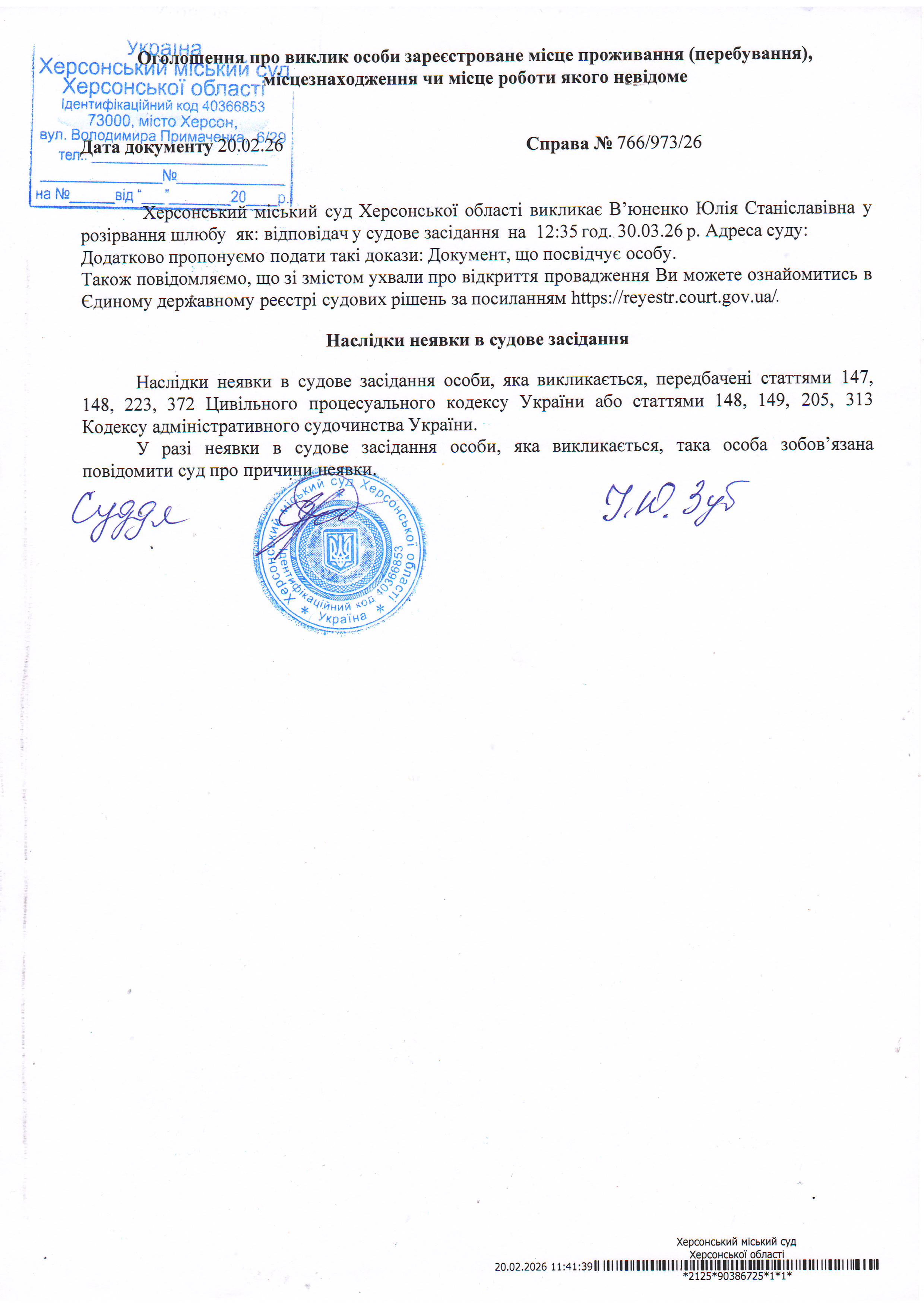 ОГОЛОШЕННЯ ПРО ВИКЛИК ДО СУДУ