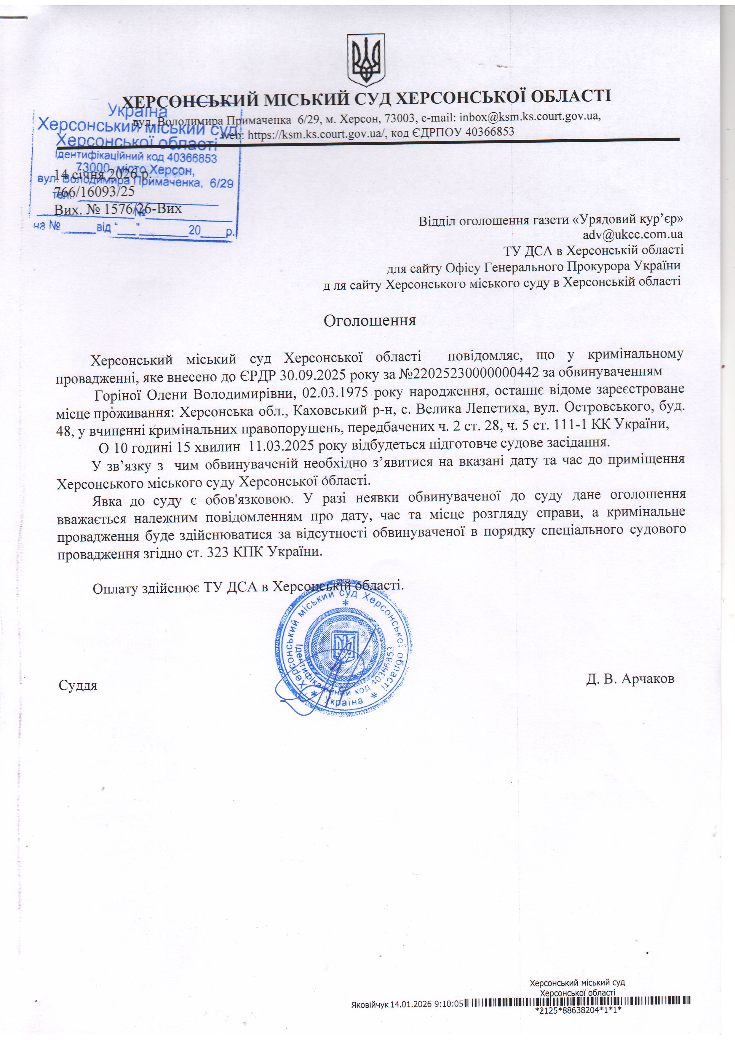 ОГОЛОШЕННЯ ПРО ВИКЛИК ДО СУДУ