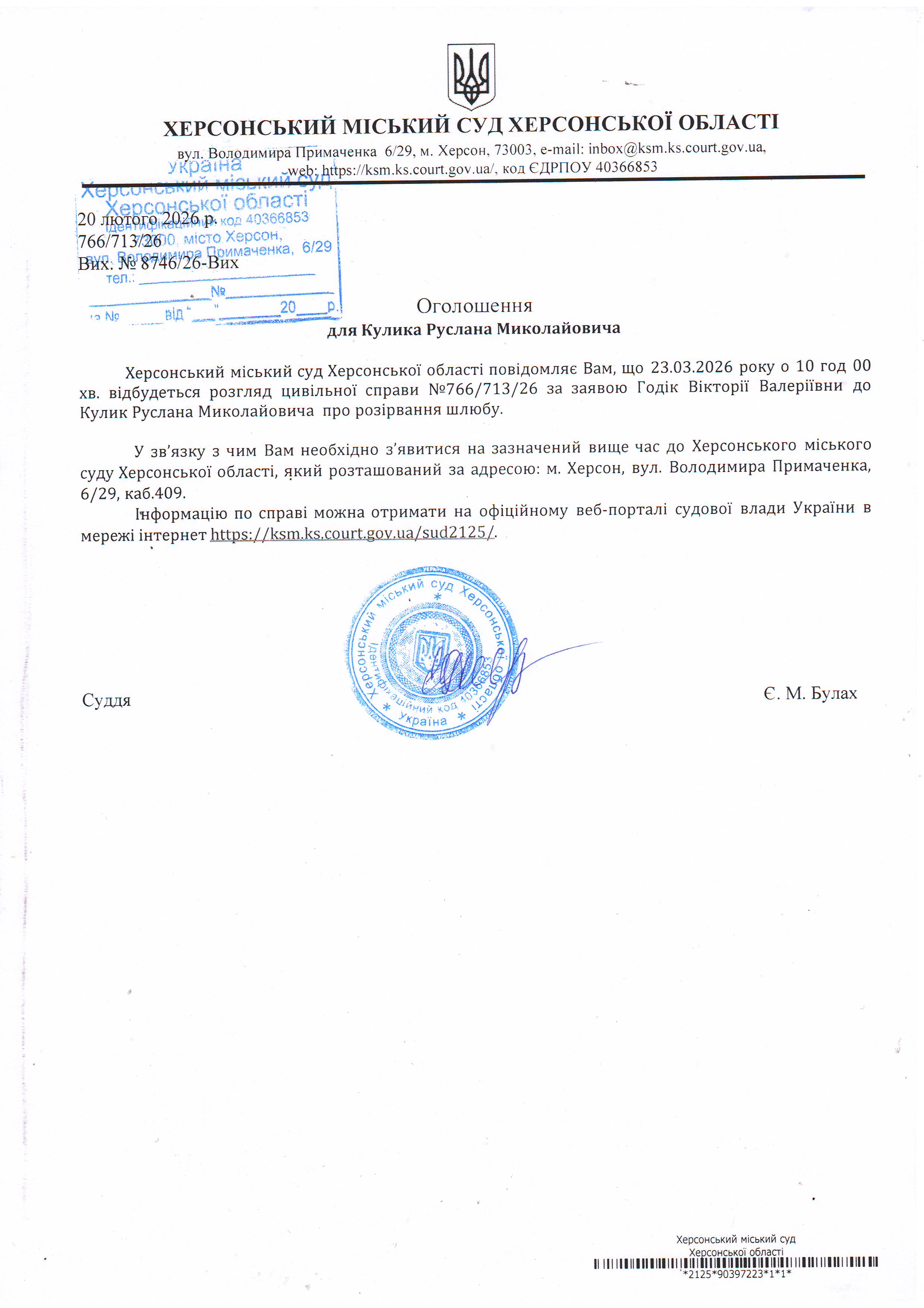 ОГОЛОШЕННЯ ПРО ВИКЛИК ДО СУДУ