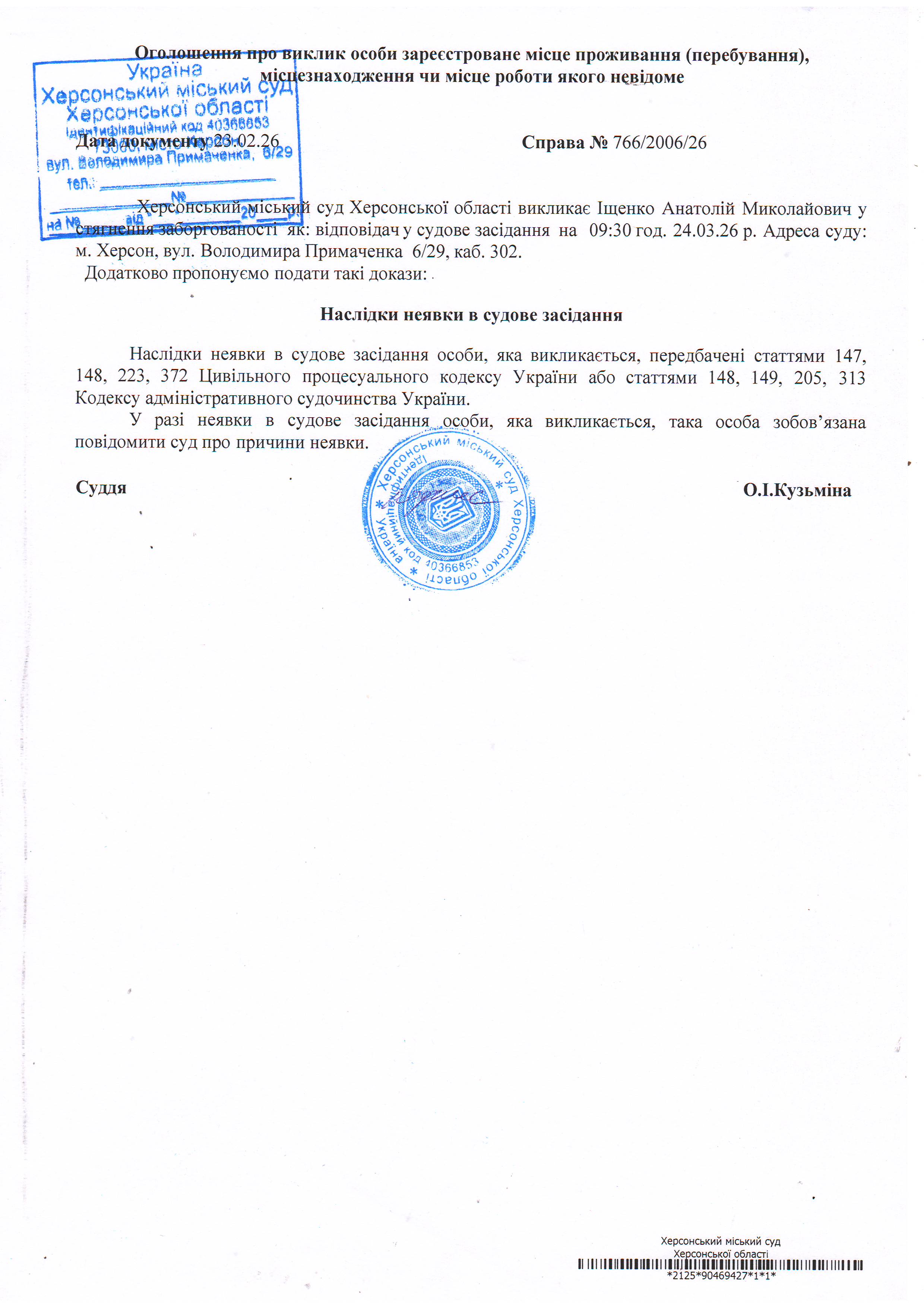 ОГОЛОШЕННЯ ПРО ВИКЛИК ДО СУДУ