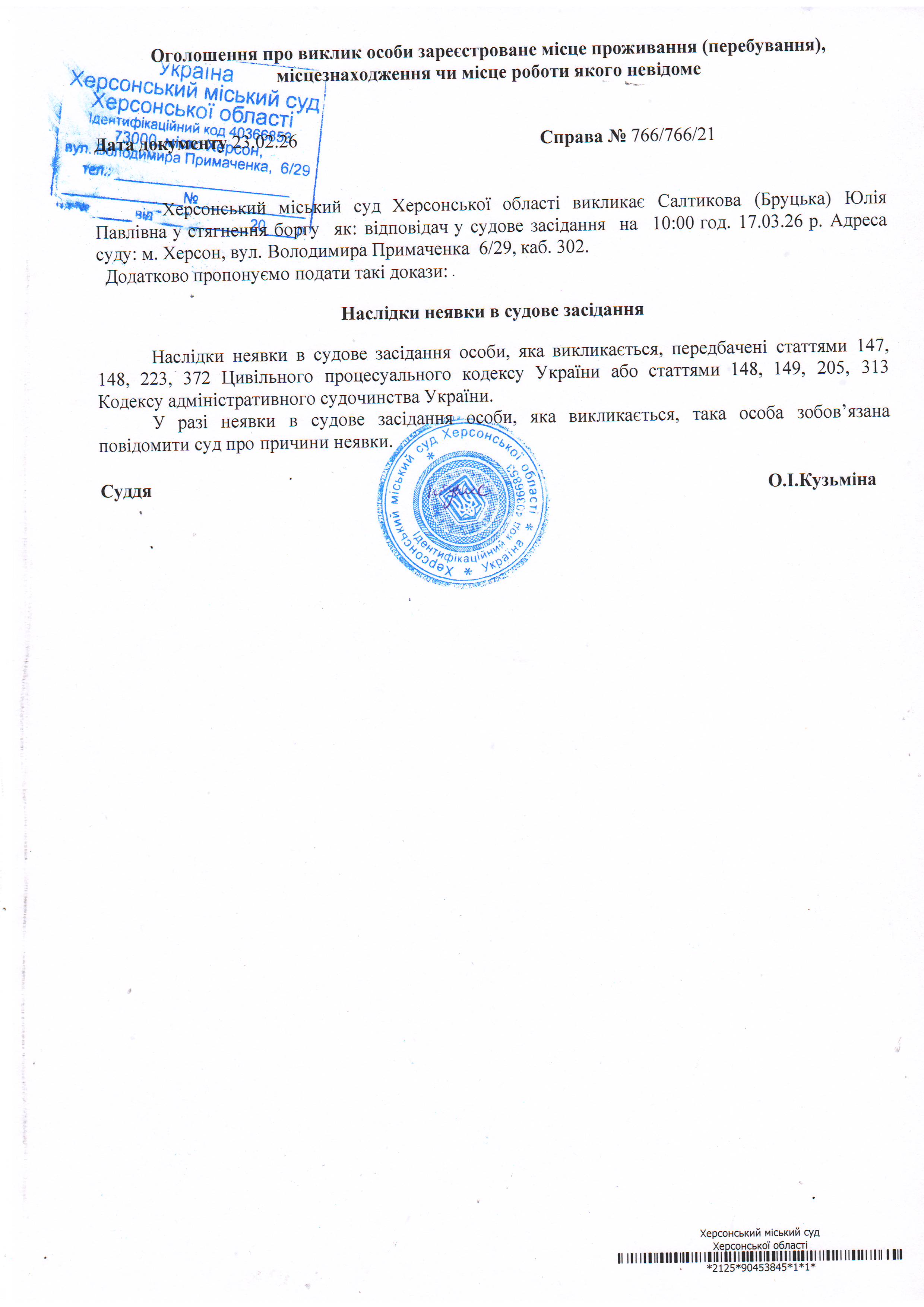 ОГОЛОШЕННЯ ПРО ВИКЛИК ДО СУДУ