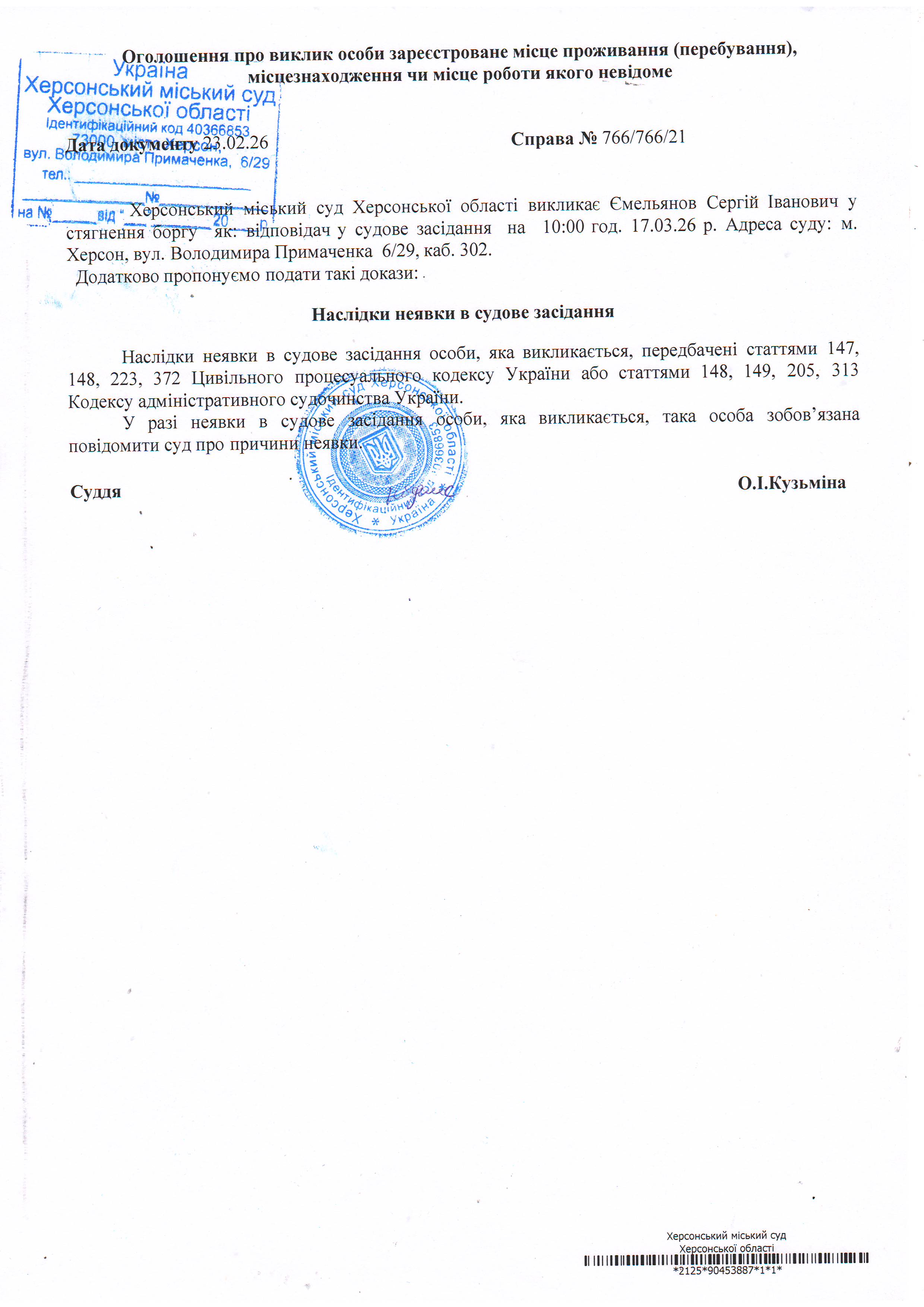 ОГОЛОШЕННЯ ПРО ВИКЛИК ДО СУДУ