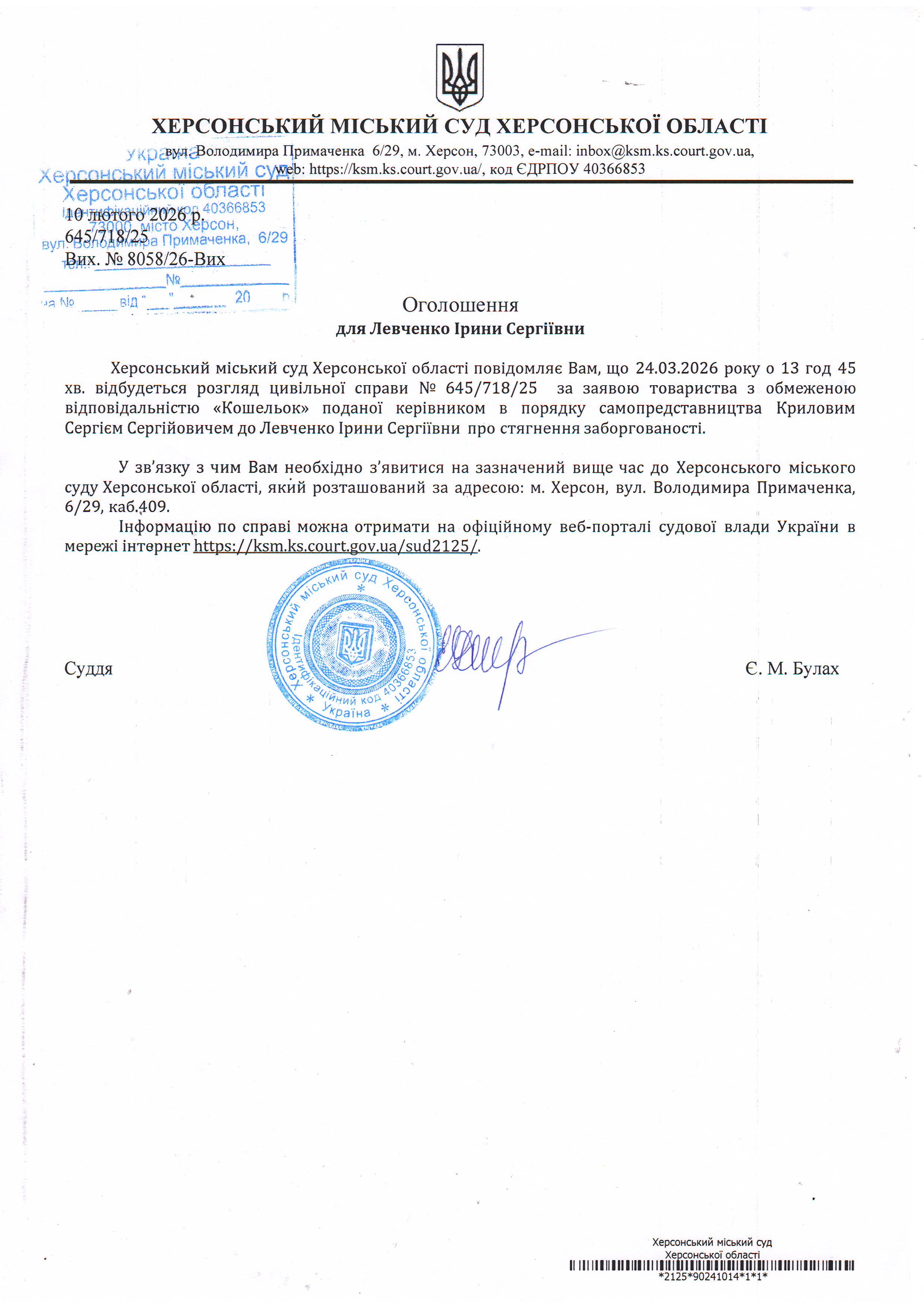 ОГОЛОШЕННЯ ПРО ВИКЛИК ДО СУДУ