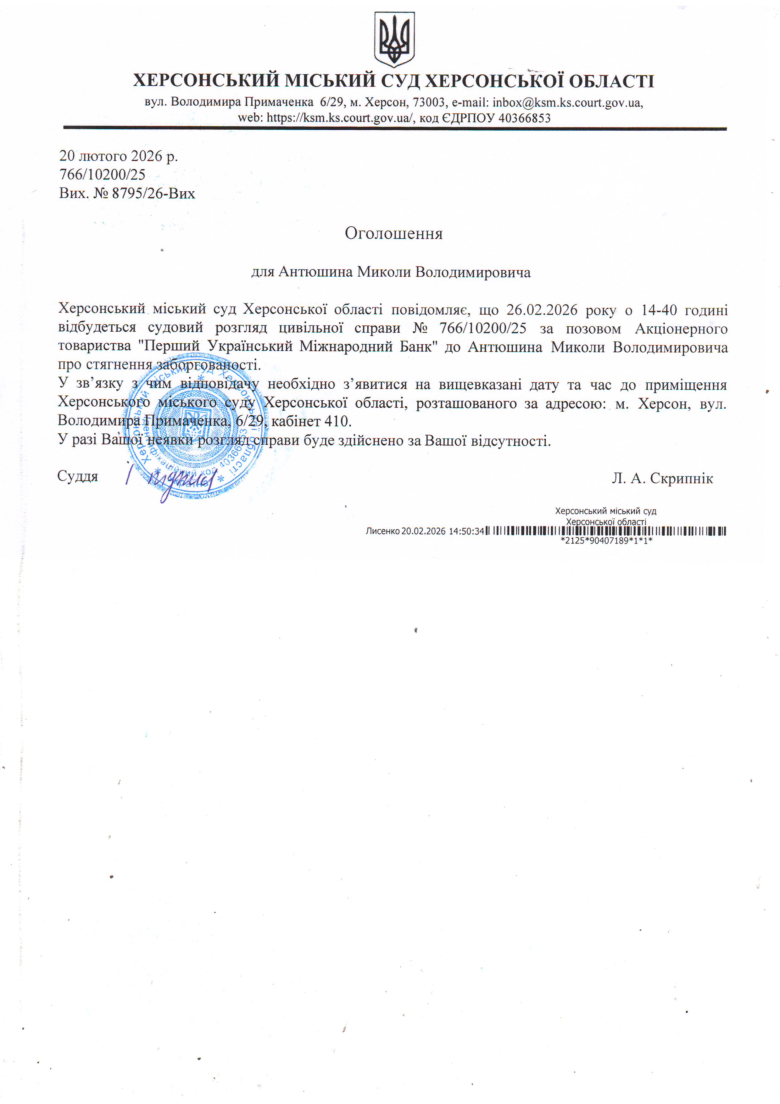 ОГОЛОШЕННЯ ПРО ВИКЛИК ДО СУДУ