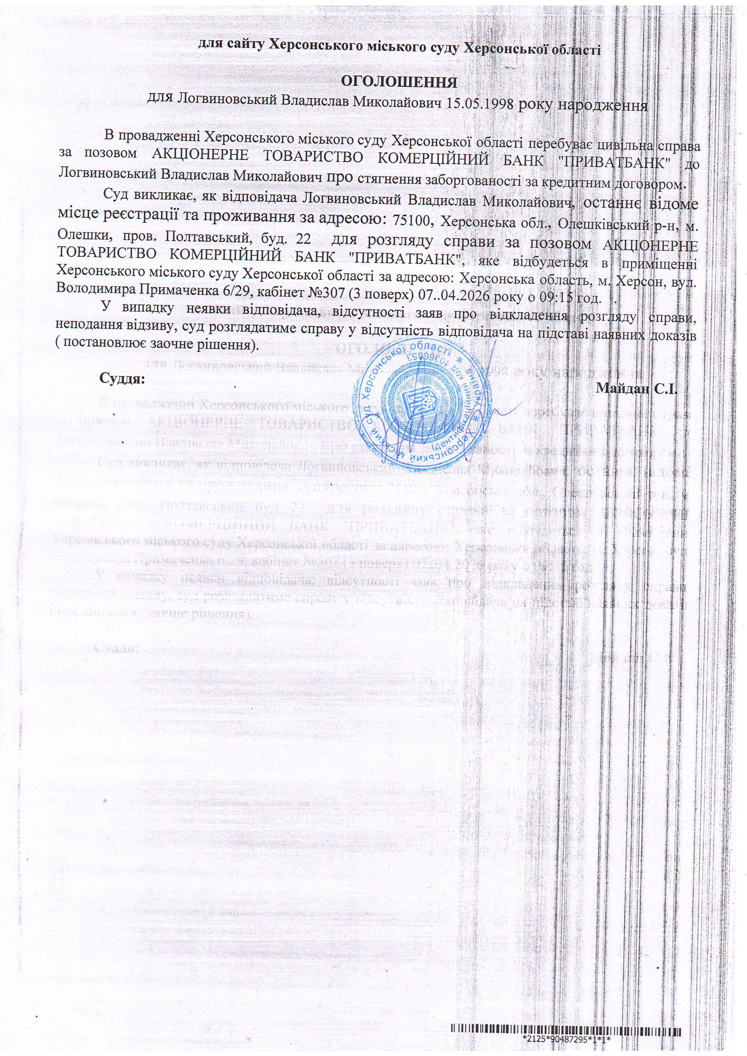 ОГОЛОШЕННЯ ПРО ВИКЛИК ДО СУДУ