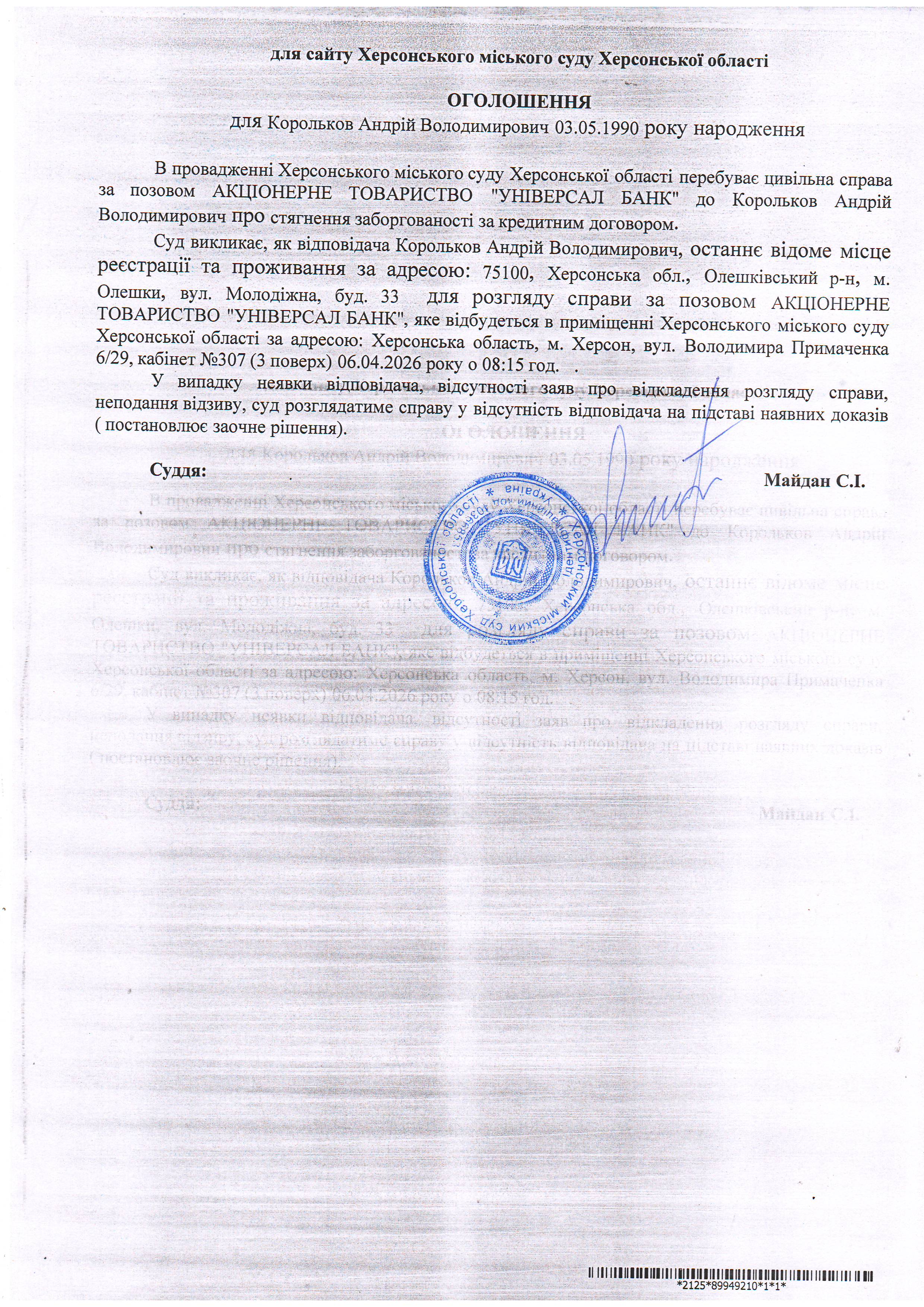 ОГОЛОШЕННЯ ПРО ВИКЛИК ДО СУДУ