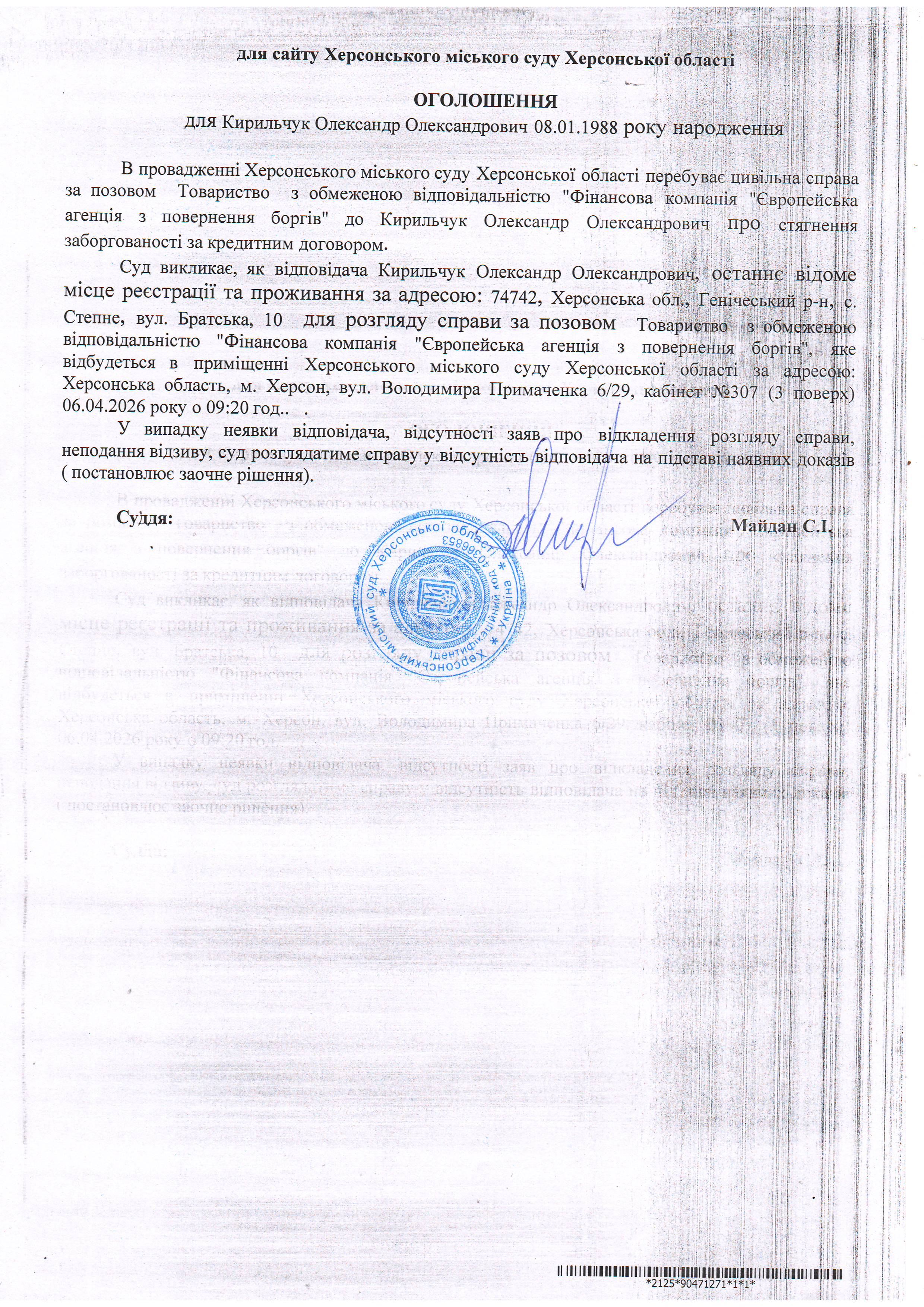 ОГОЛОШЕННЯ ПРО ВИКЛИК ДО СУДУ