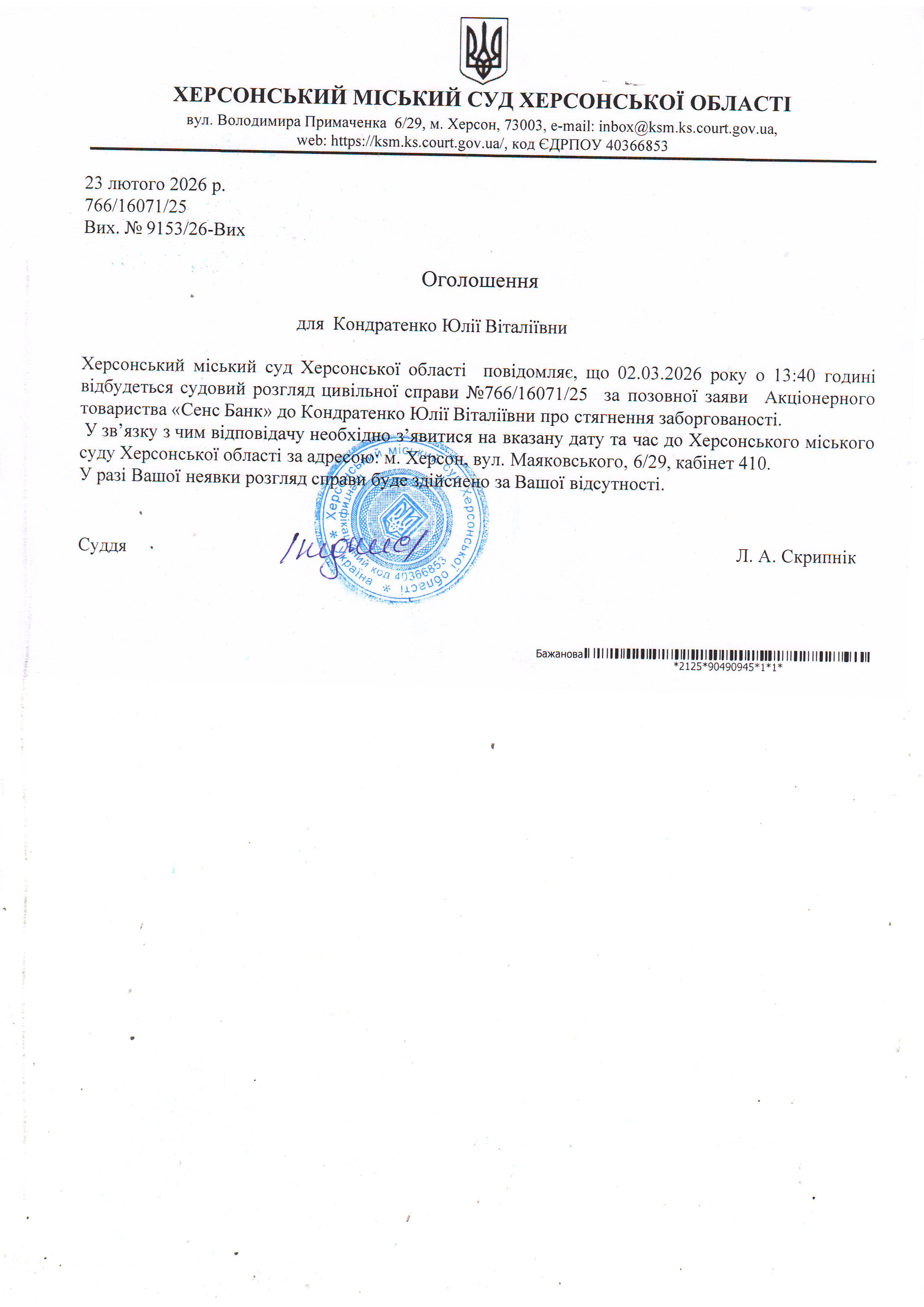 ОГОЛОШЕННЯ ПРО ВИКЛИК ДО СУДУ