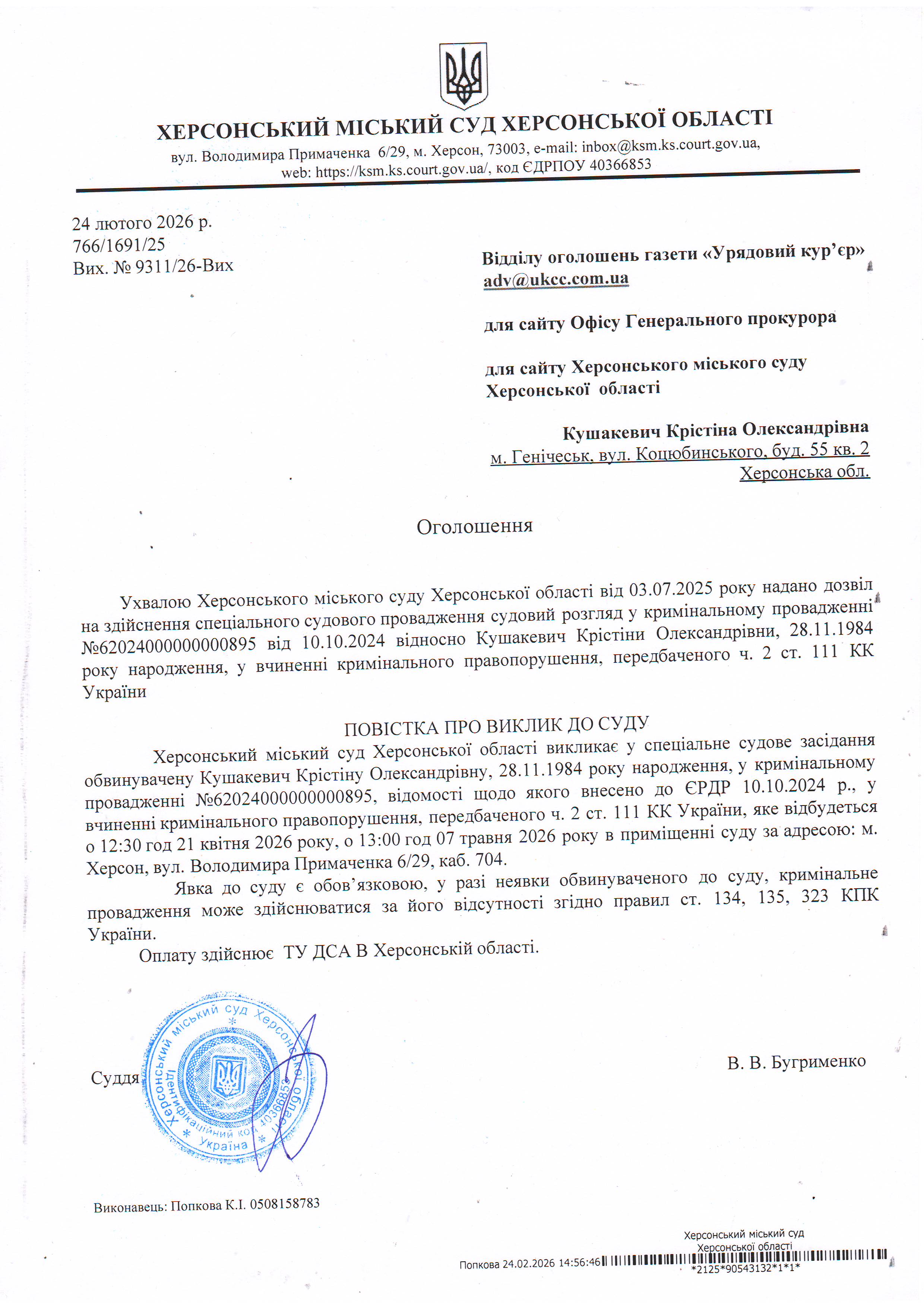 Оголошення про виклик особи в суд та повідомлення про судове рішення