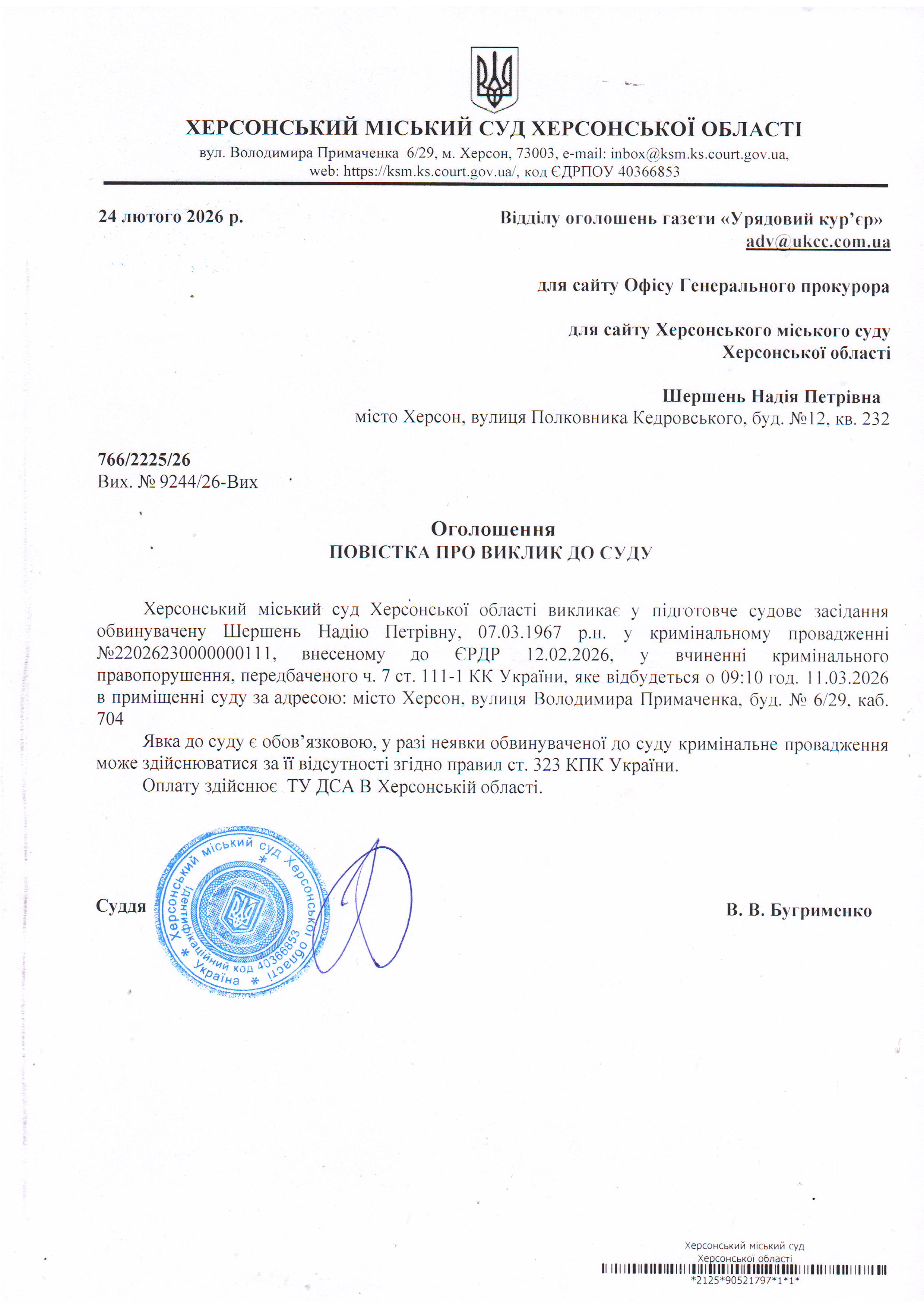 ОГОЛОШЕННЯ ПРО ВИКЛИК ДО СУДУ