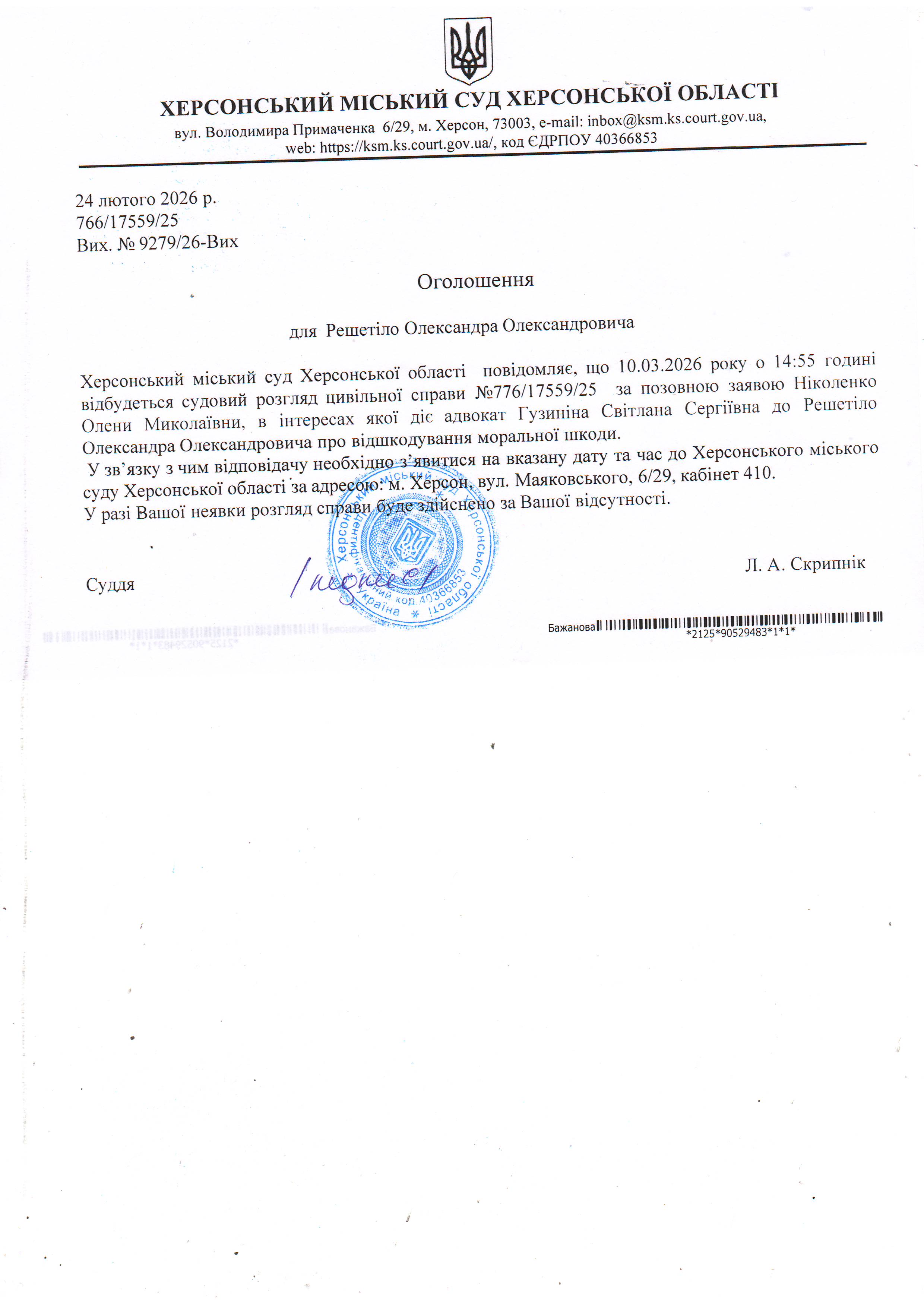 ОГОЛОШЕННЯ ПРО ВИКЛИК ДО СУДУ