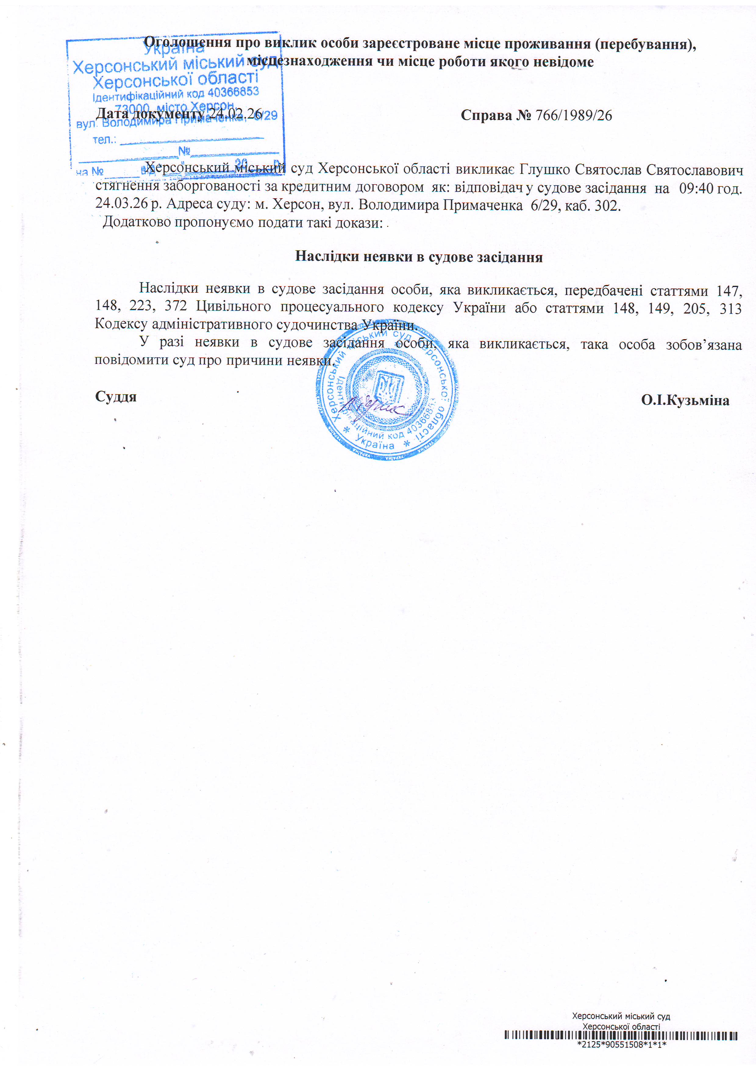 ОГОЛОШЕННЯ ПРО ВИКЛИК ДО СУДУ