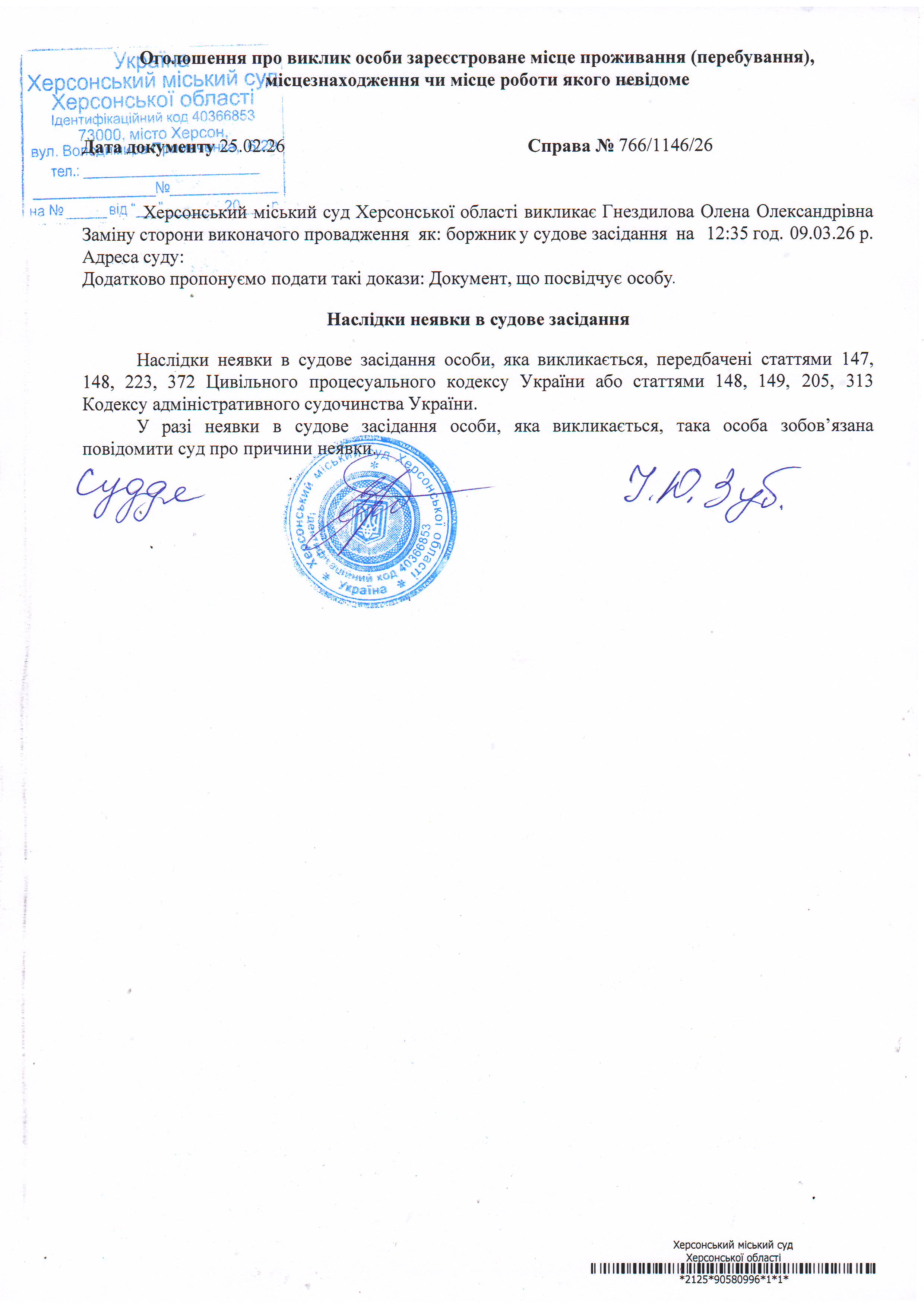 ОГОЛОШЕННЯ ПРО ВИКЛИК ДО СУДУ