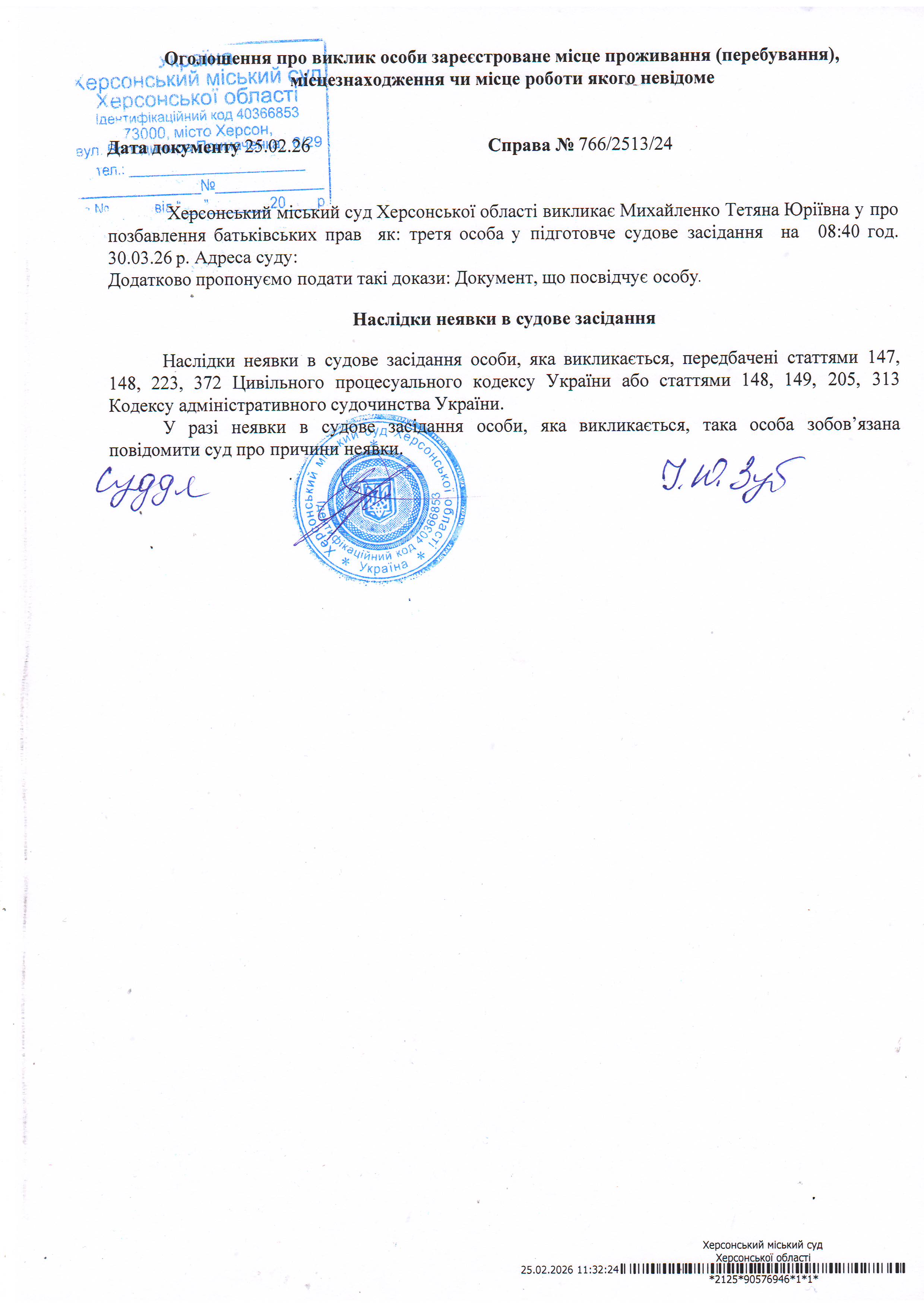 ОГОЛОШЕННЯ ПРО ВИКЛИК ДО СУДУ