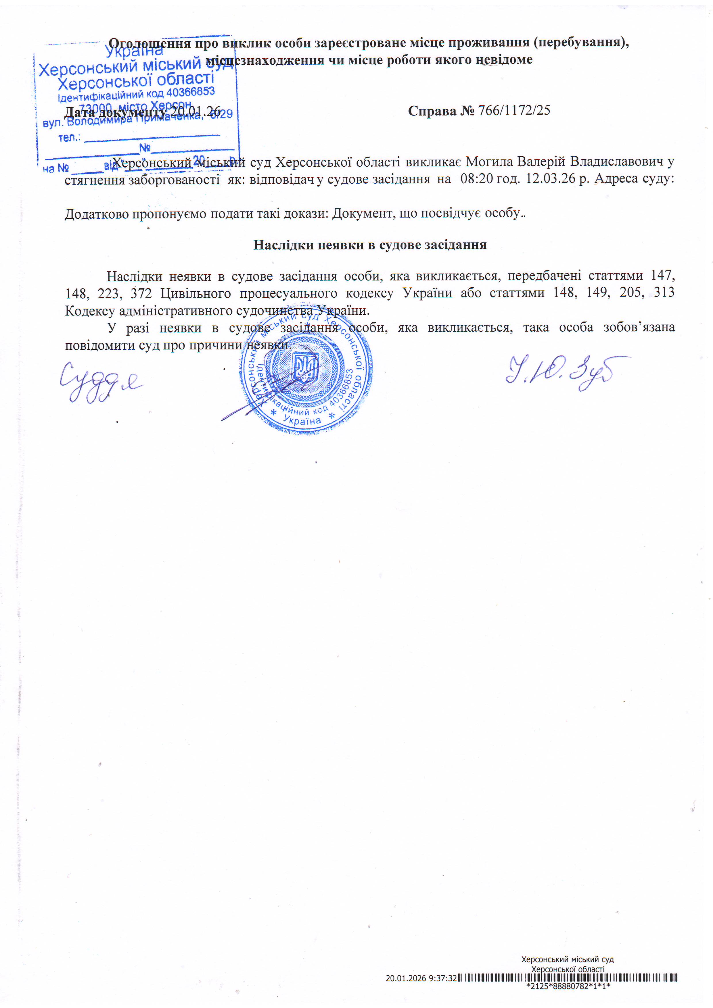 ОГОЛОШЕННЯ ПРО ВИКЛИК ДО СУДУ
