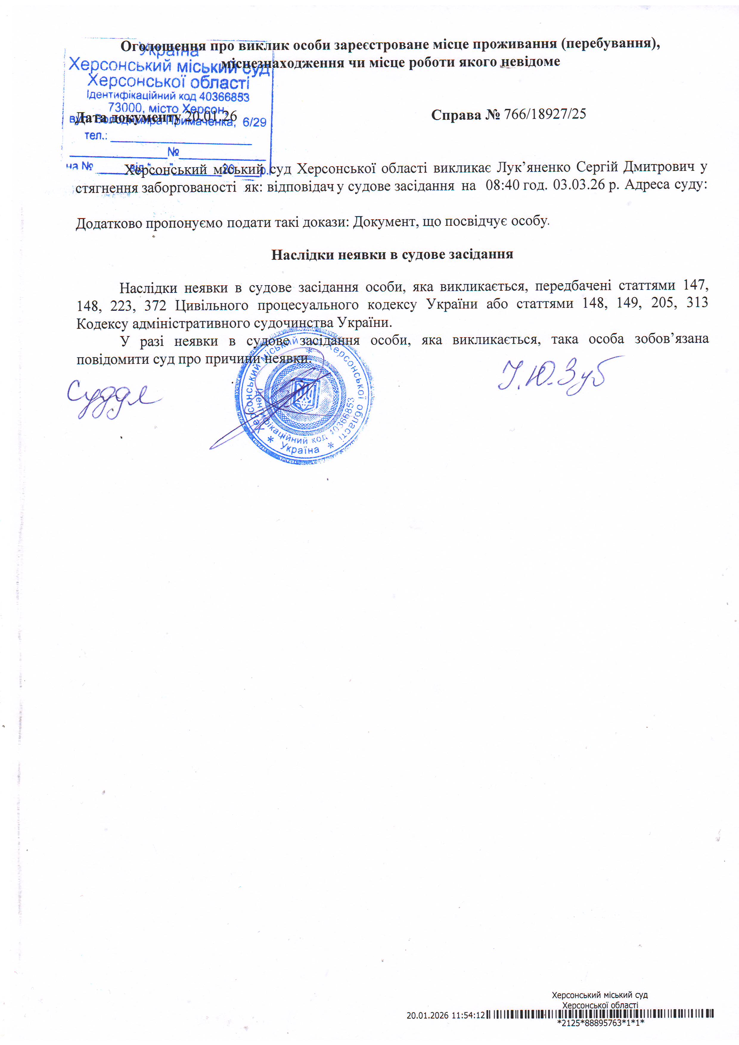 ОГОЛОШЕННЯ ПРО ВИКЛИК ДО СУДУ