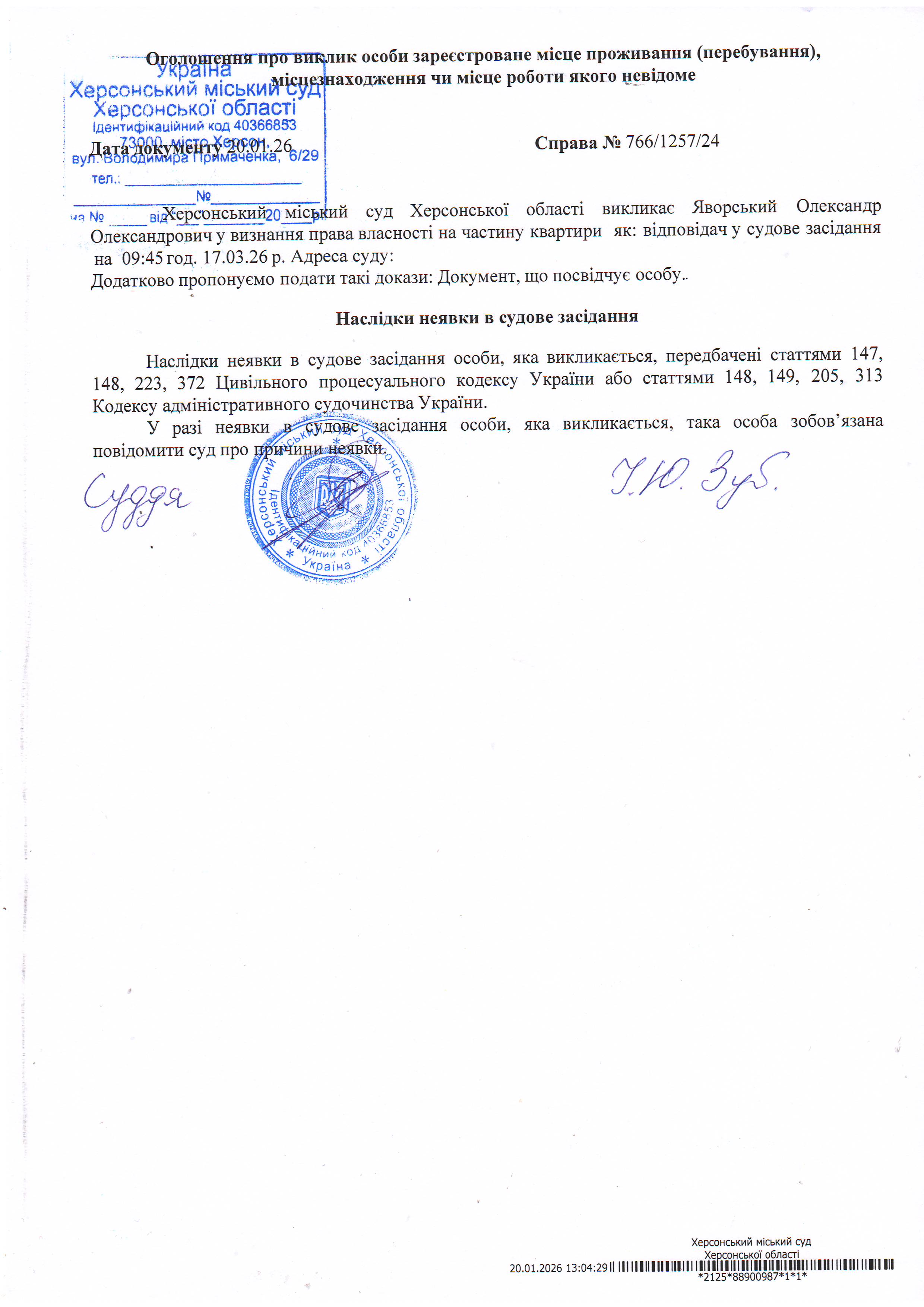 ОГОЛОШЕННЯ ПРО ВИКЛИК ДО СУДУ