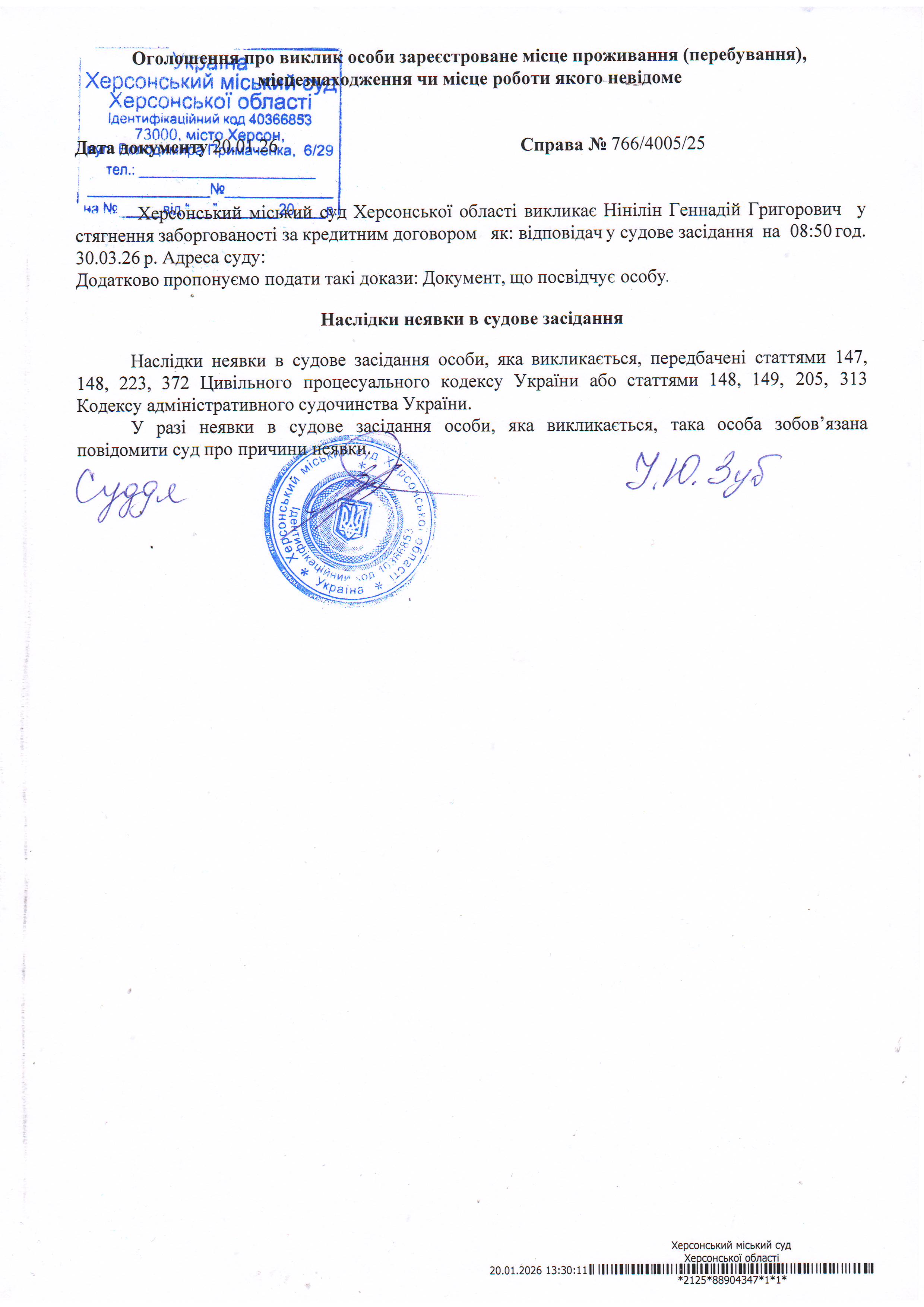 ОГОЛОШЕННЯ ПРО ВИКЛИК ДО СУДУ