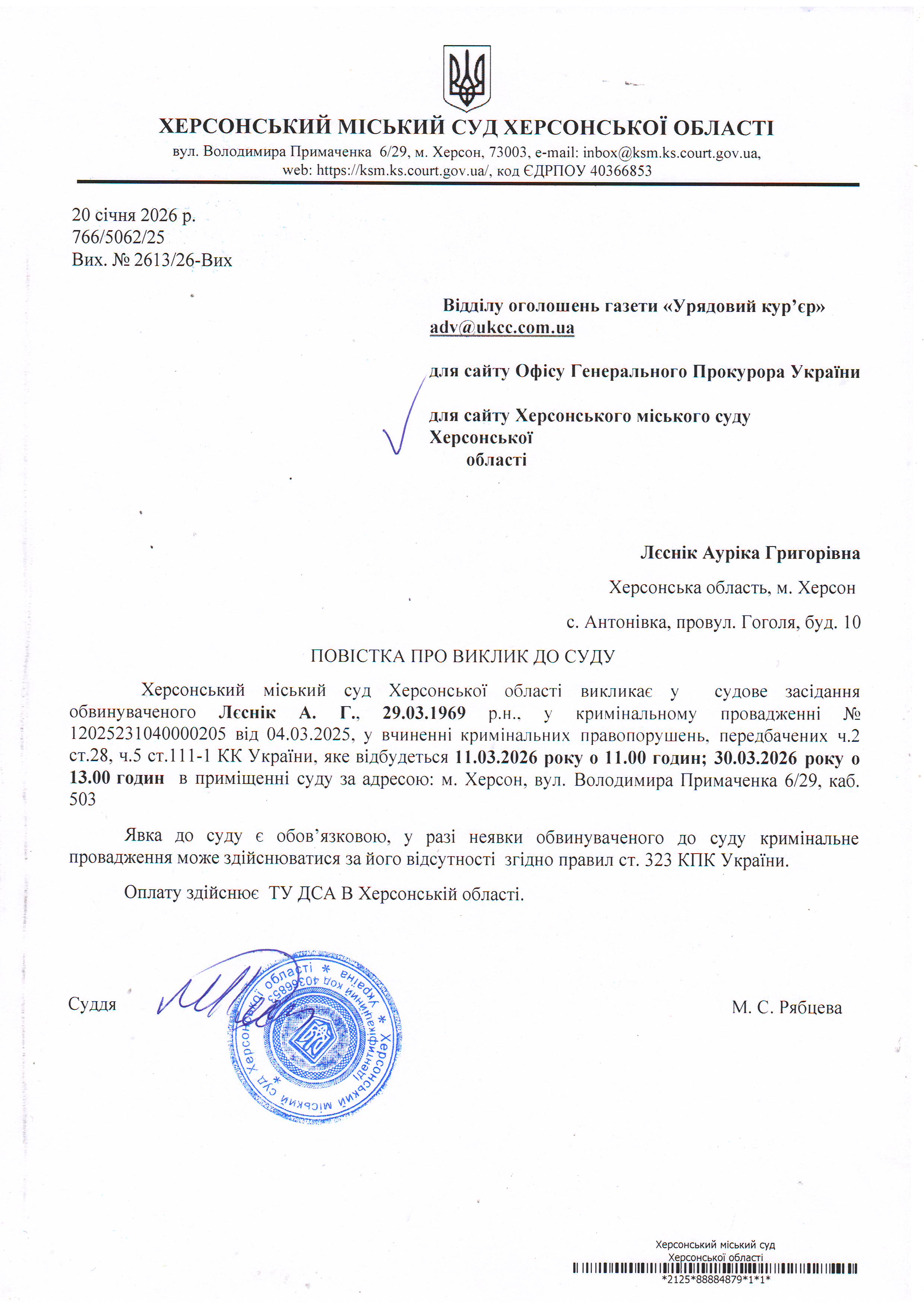 ОГОЛОШЕННЯ ПРО ВИКЛИК ДО СУДУ