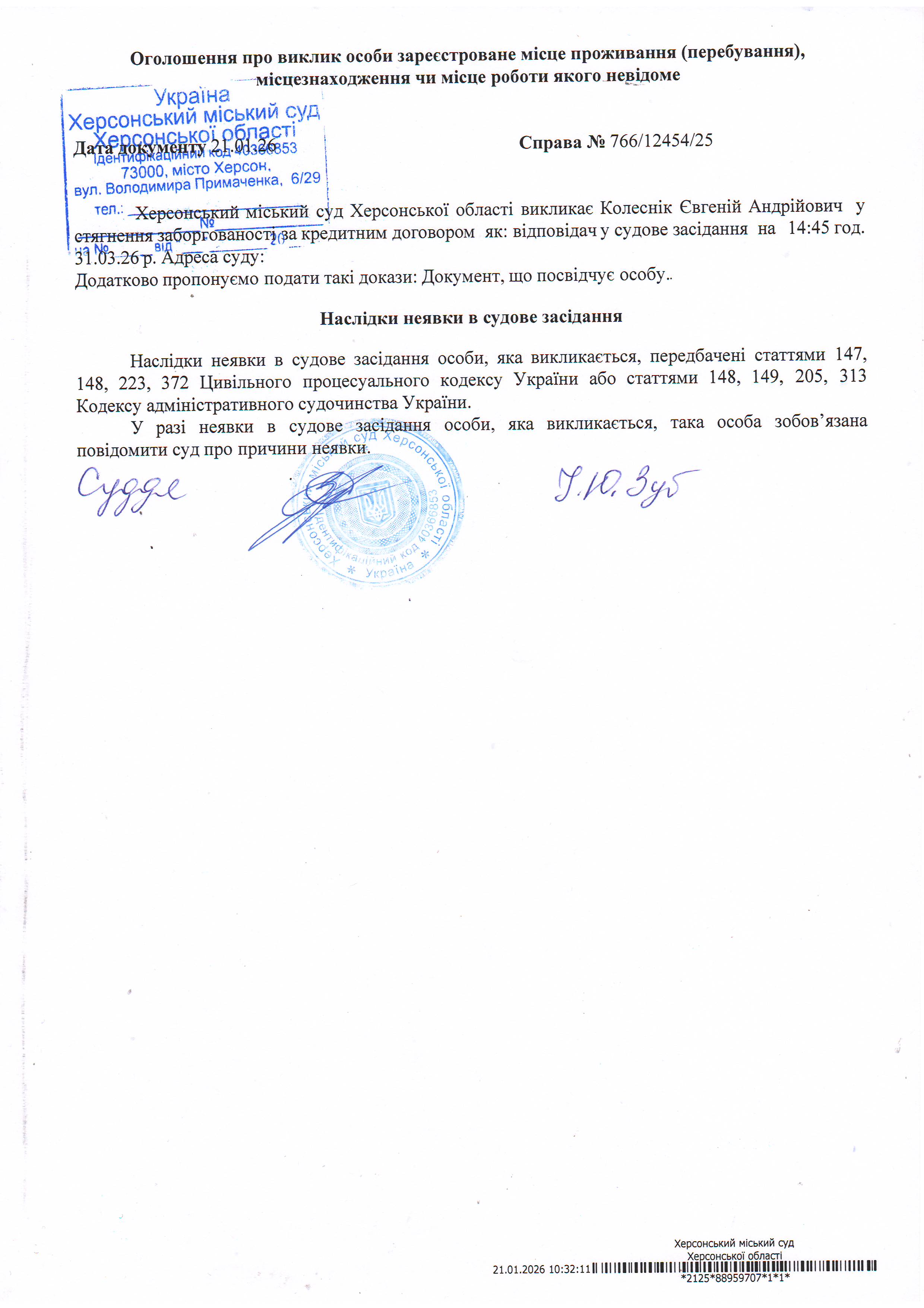 ОГОЛОШЕННЯ ПРО ВИКЛИК ДО СУДУ