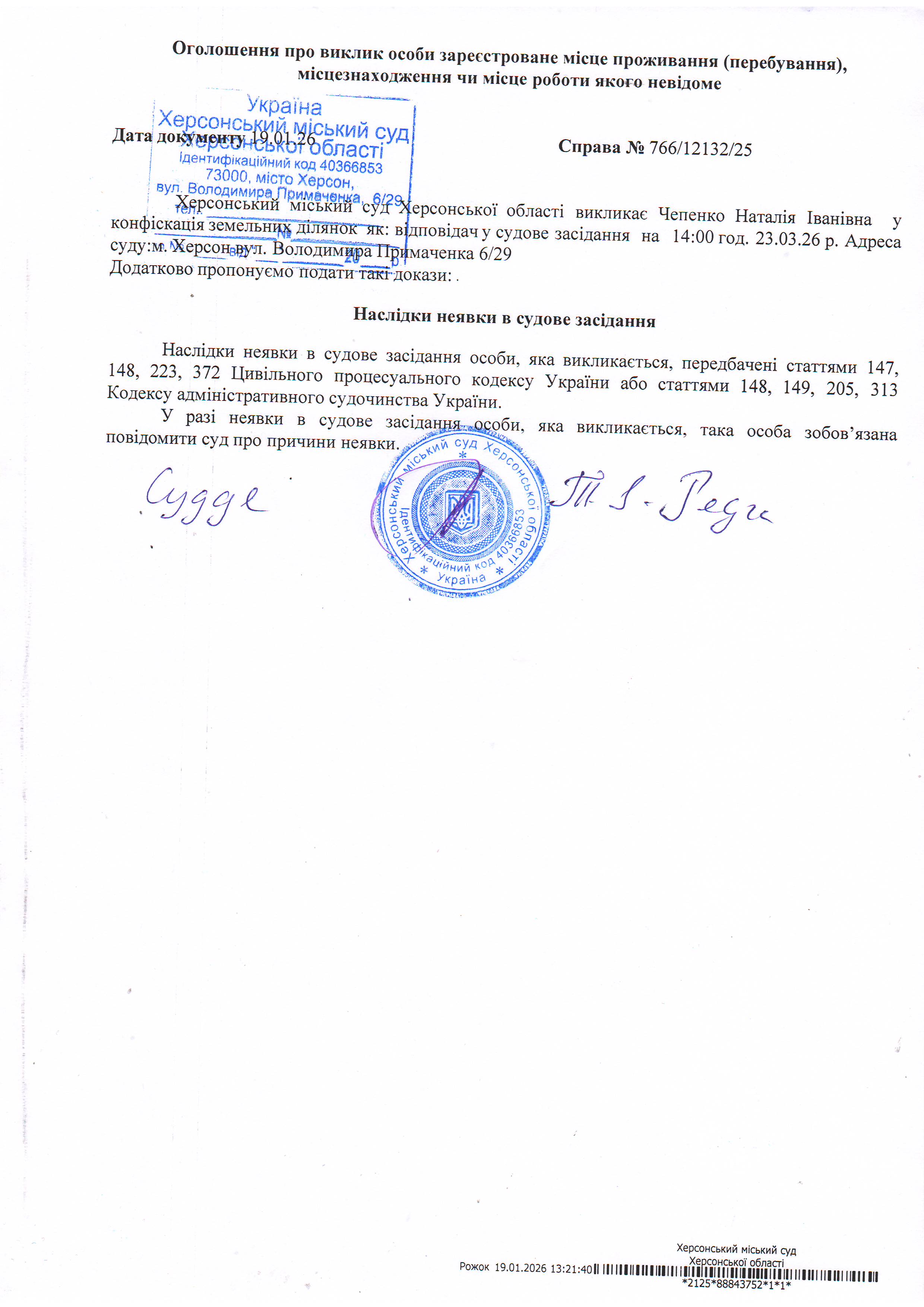 ОГОЛОШЕННЯ ПРО ВИКЛИК ДО СУДУ