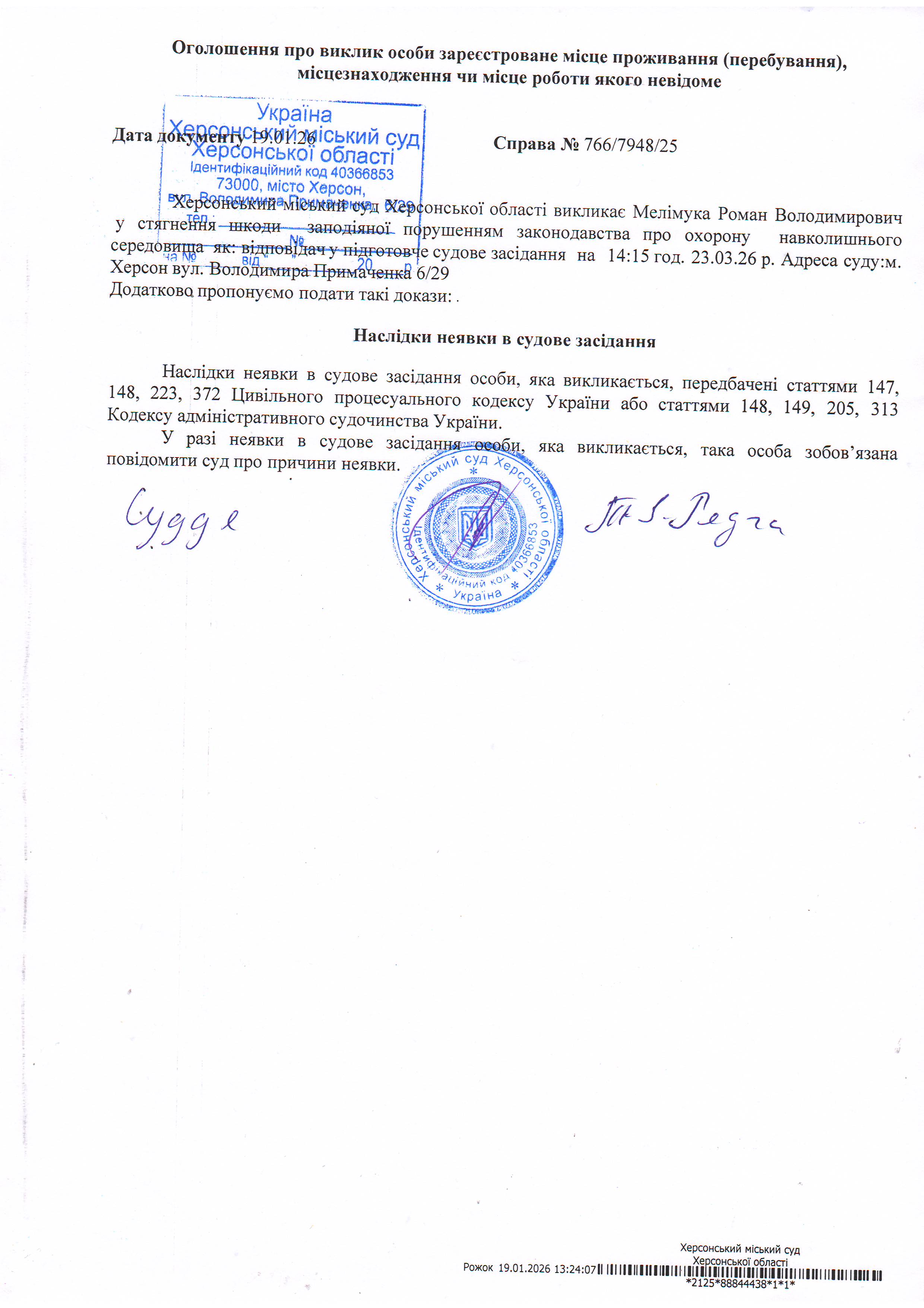 ОГОЛОШЕННЯ ПРО ВИКЛИК ДО СУДУ