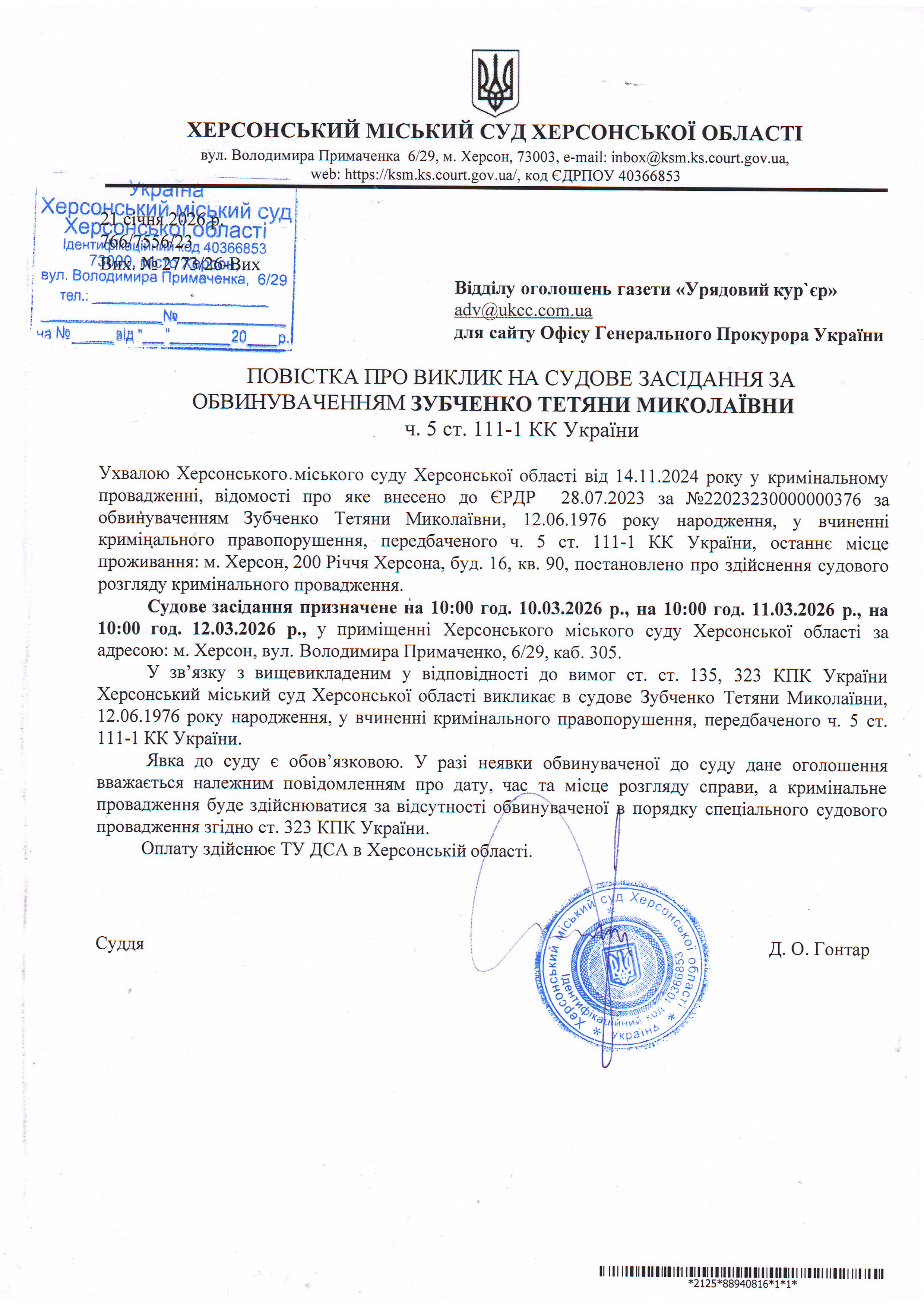 ОГОЛОШЕННЯ ПРО ВИКЛИК ДО СУДУ