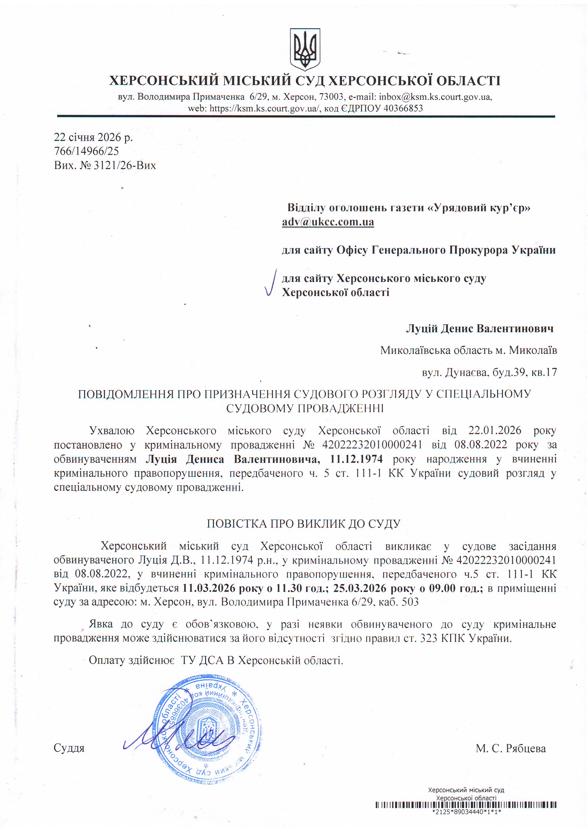 ОГОЛОШЕННЯ ПРО ВИКЛИК ДО СУДУ
