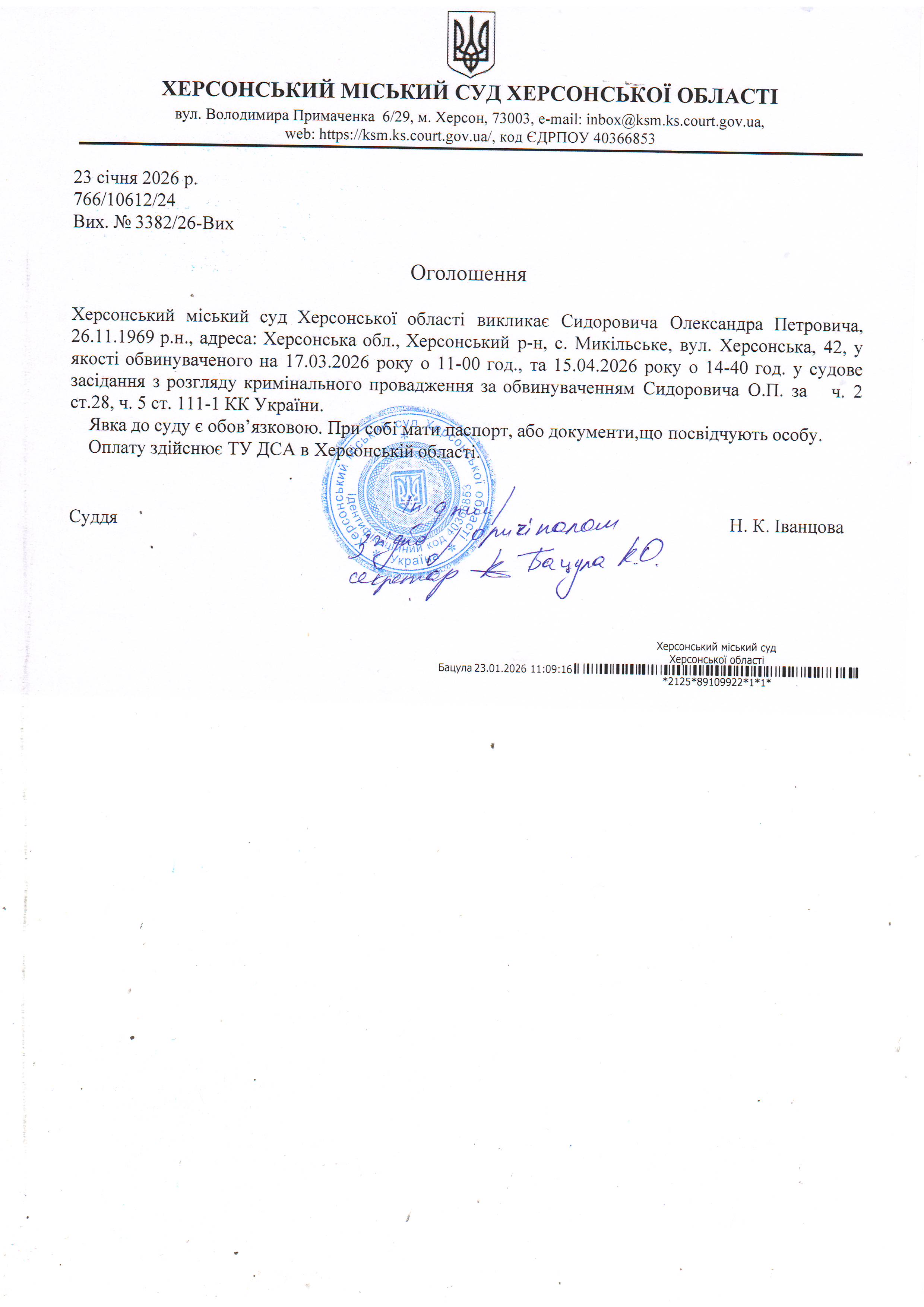 ОГОЛОШЕННЯ ПРО ВИКЛИК ДО СУДУ