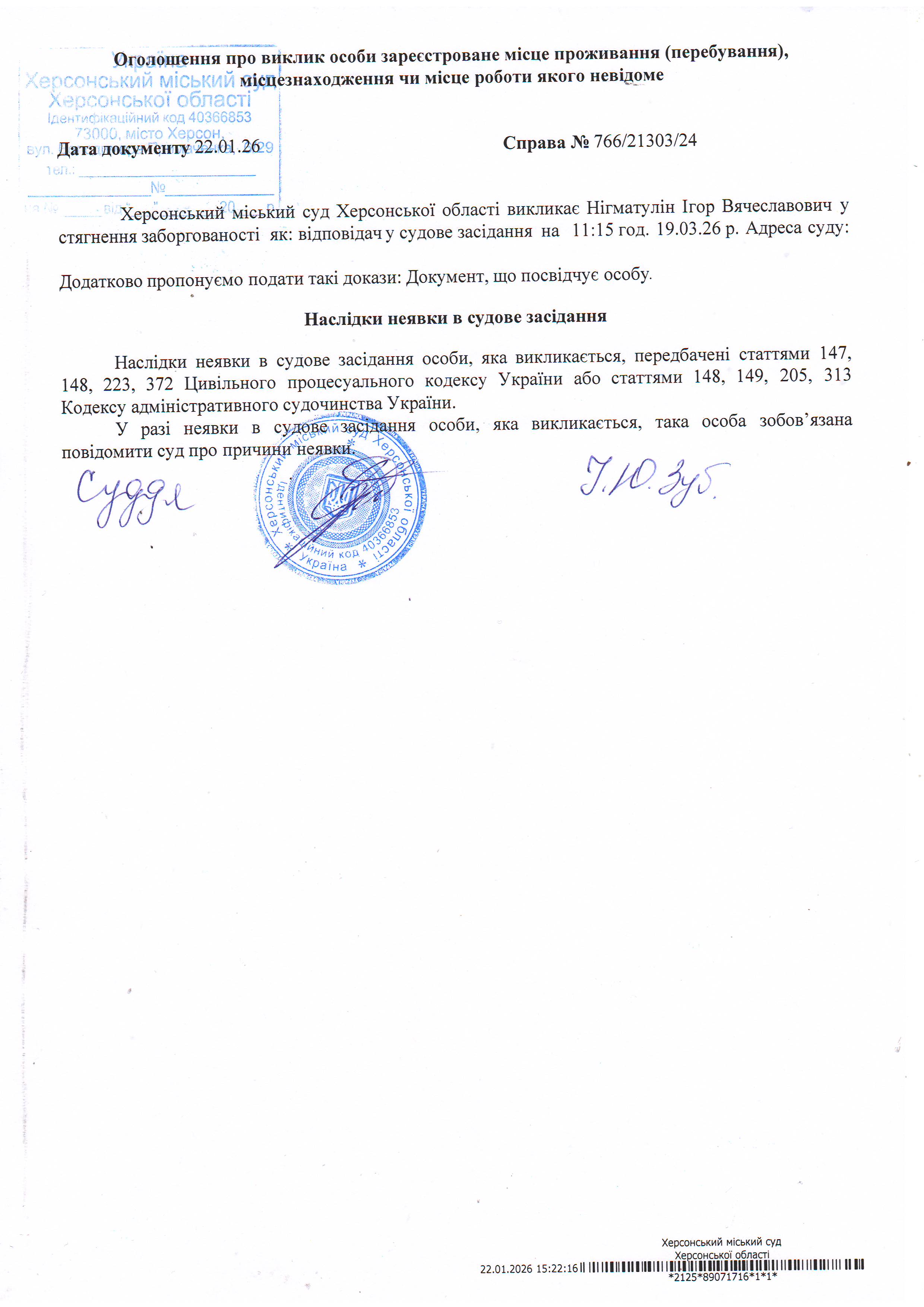 ОГОЛОШЕННЯ ПРО ВИКЛИК ДО СУДУ