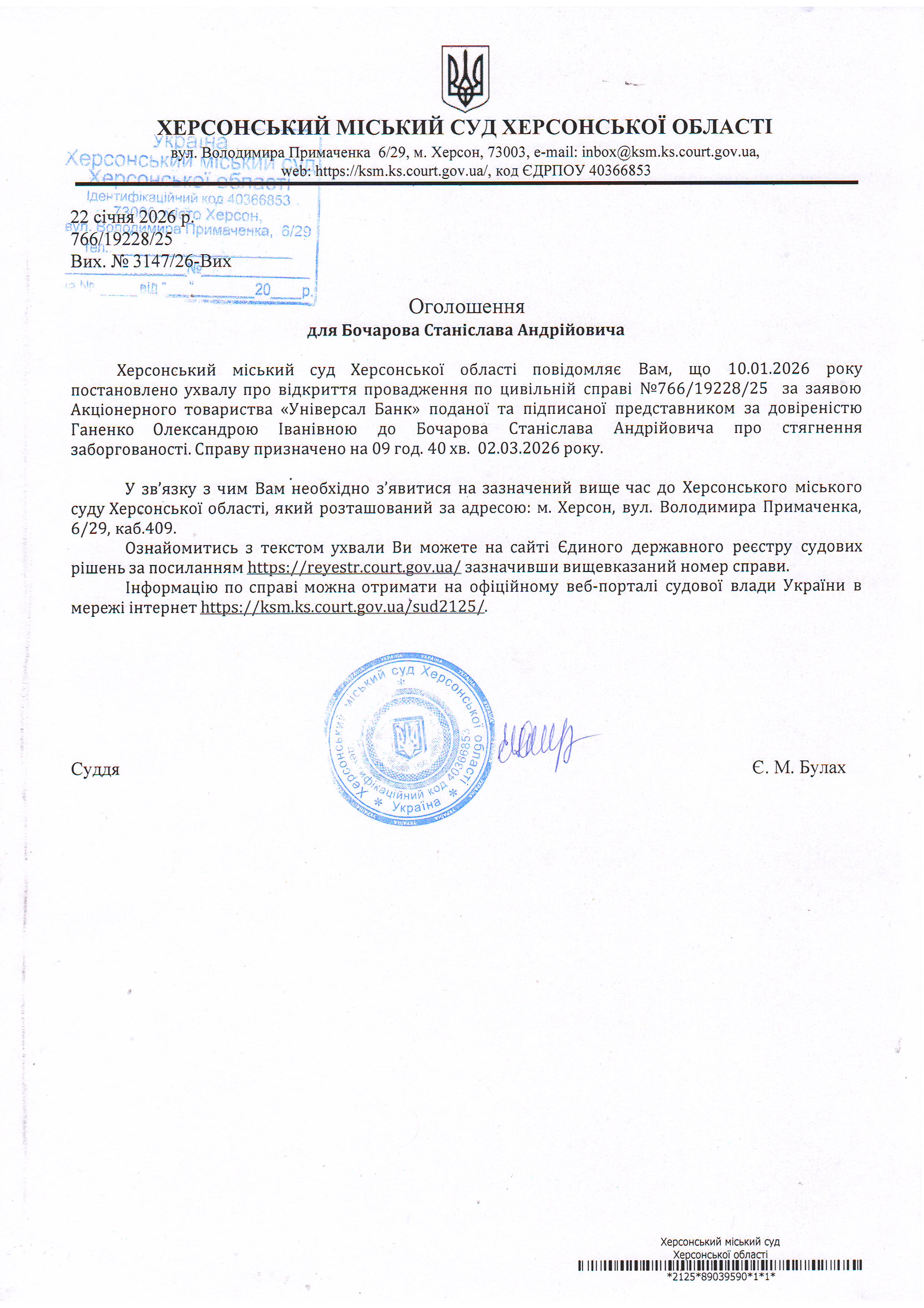 ОГОЛОШЕННЯ ПРО ВИКЛИК ДО СУДУ
