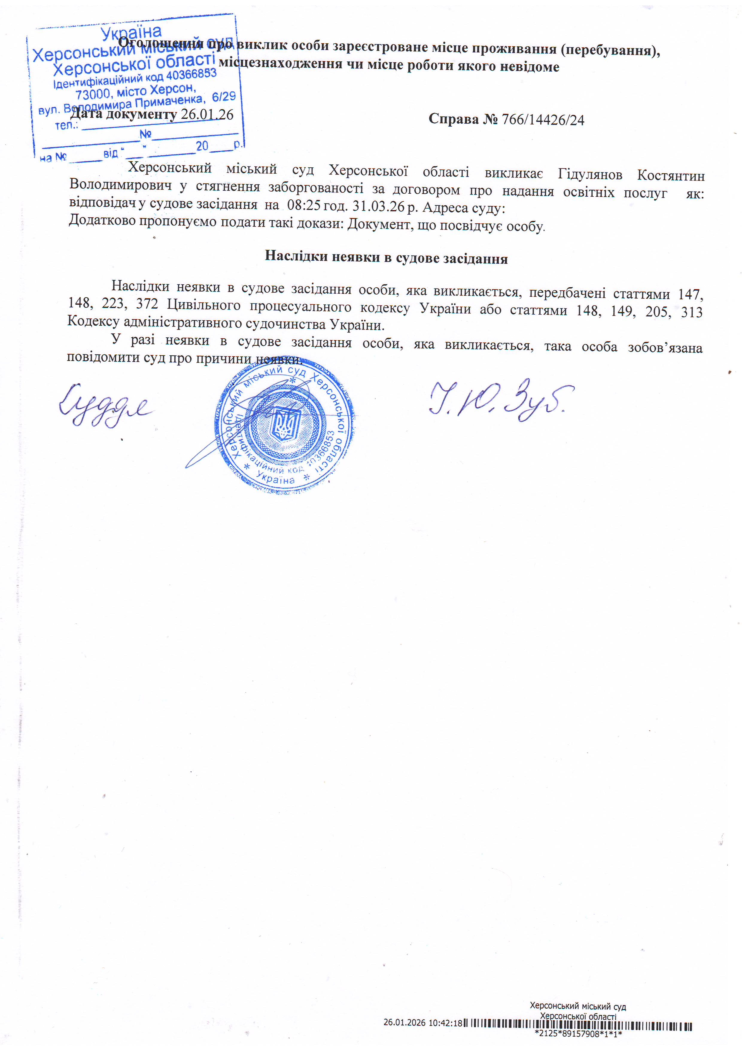 ОГОЛОШЕННЯ ПРО ВИКЛИК ДО СУДУ
