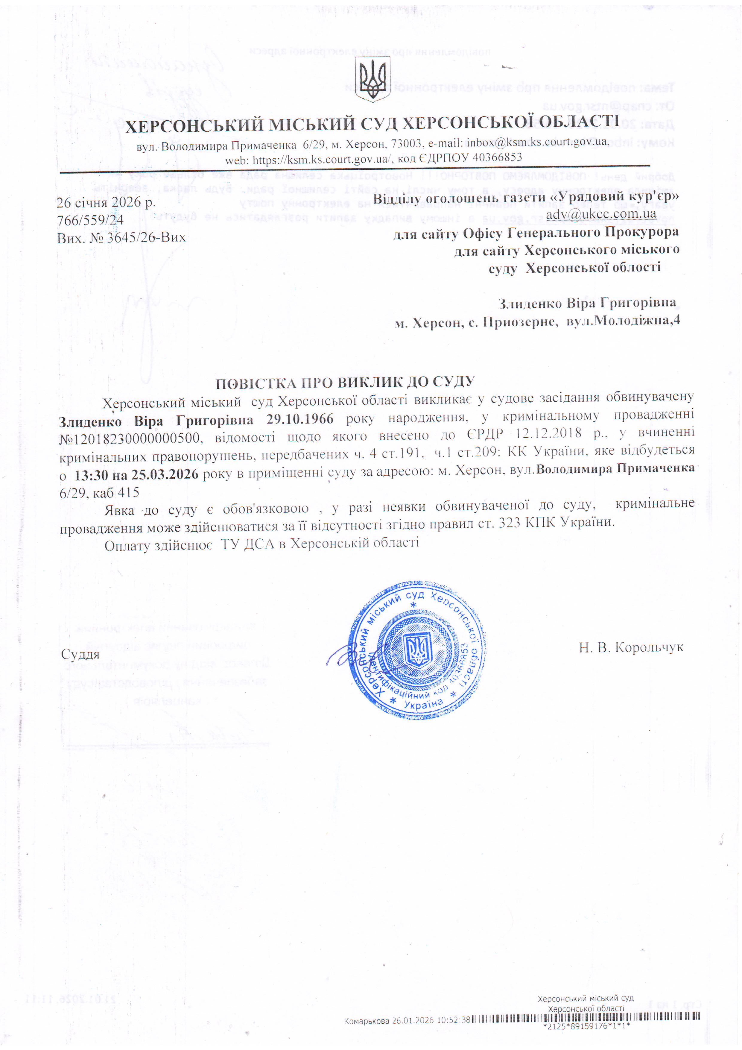 ОГОЛОШЕННЯ ПРО ВИКЛИК ДО СУДУ