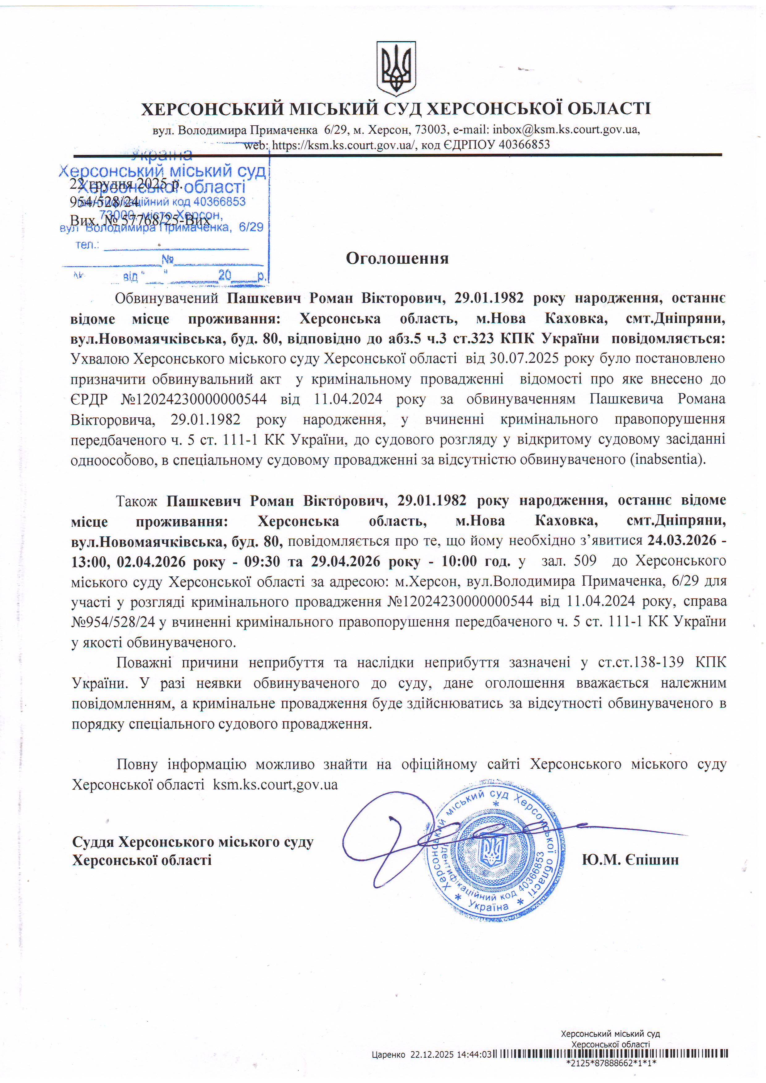 ОГОЛОШЕННЯ ПРО ВИКЛИК ДО СУДУ