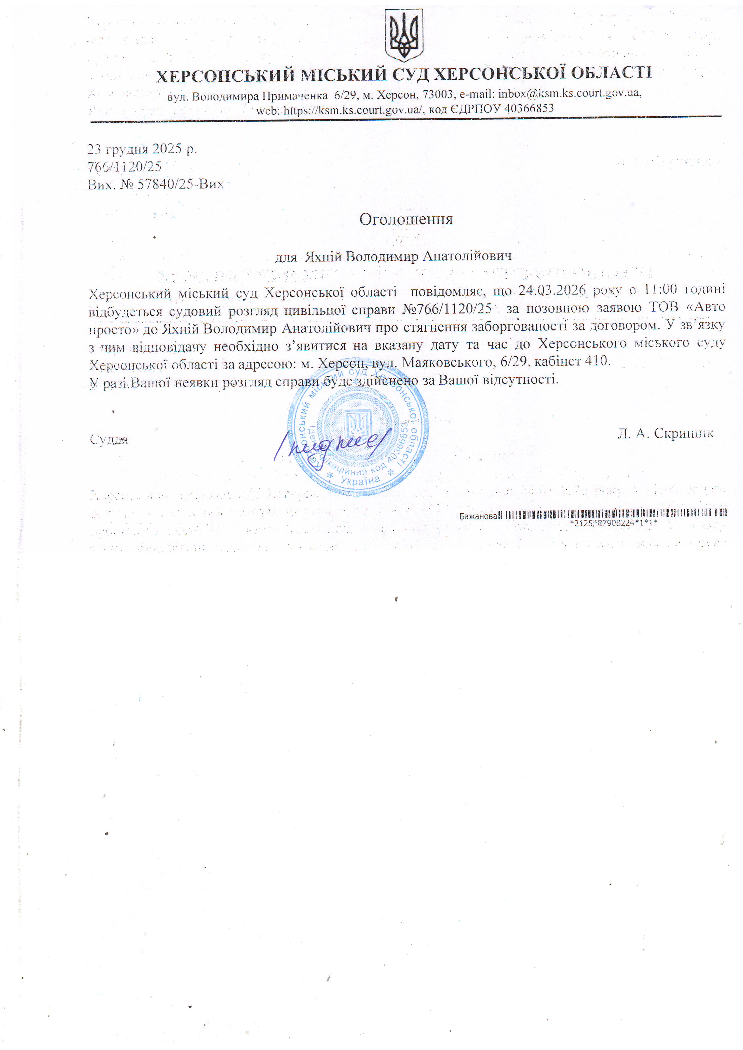 ОГОЛОШЕННЯ ПРО ВИКЛИК ДО СУДУ