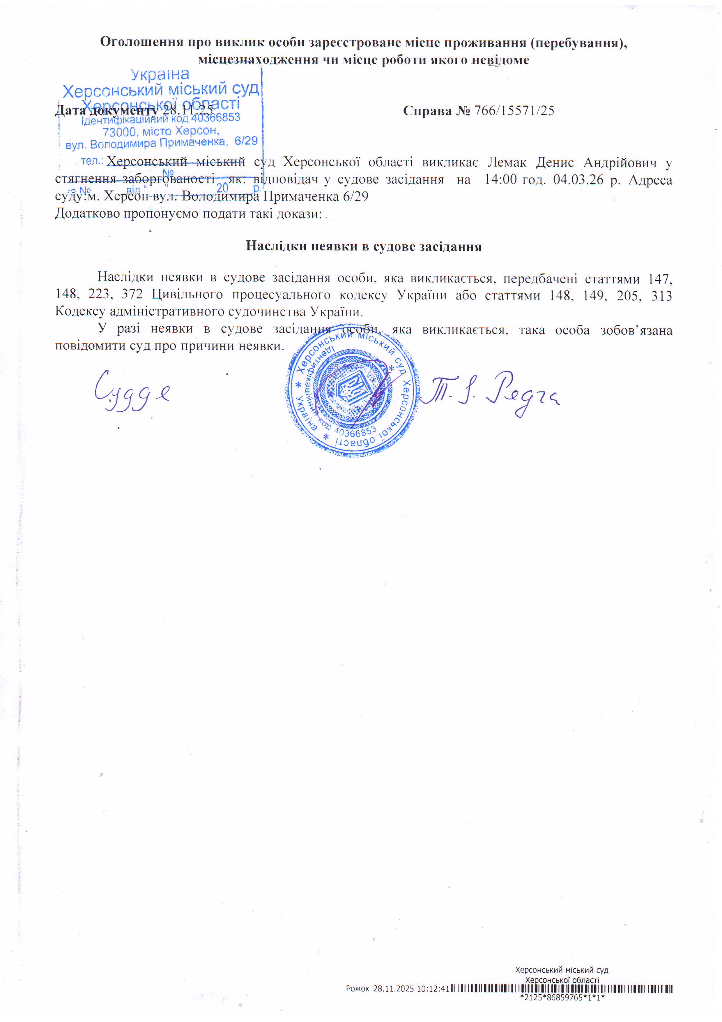 ОГОЛОШЕННЯ ПРО ВИКЛИК ДО СУДУ