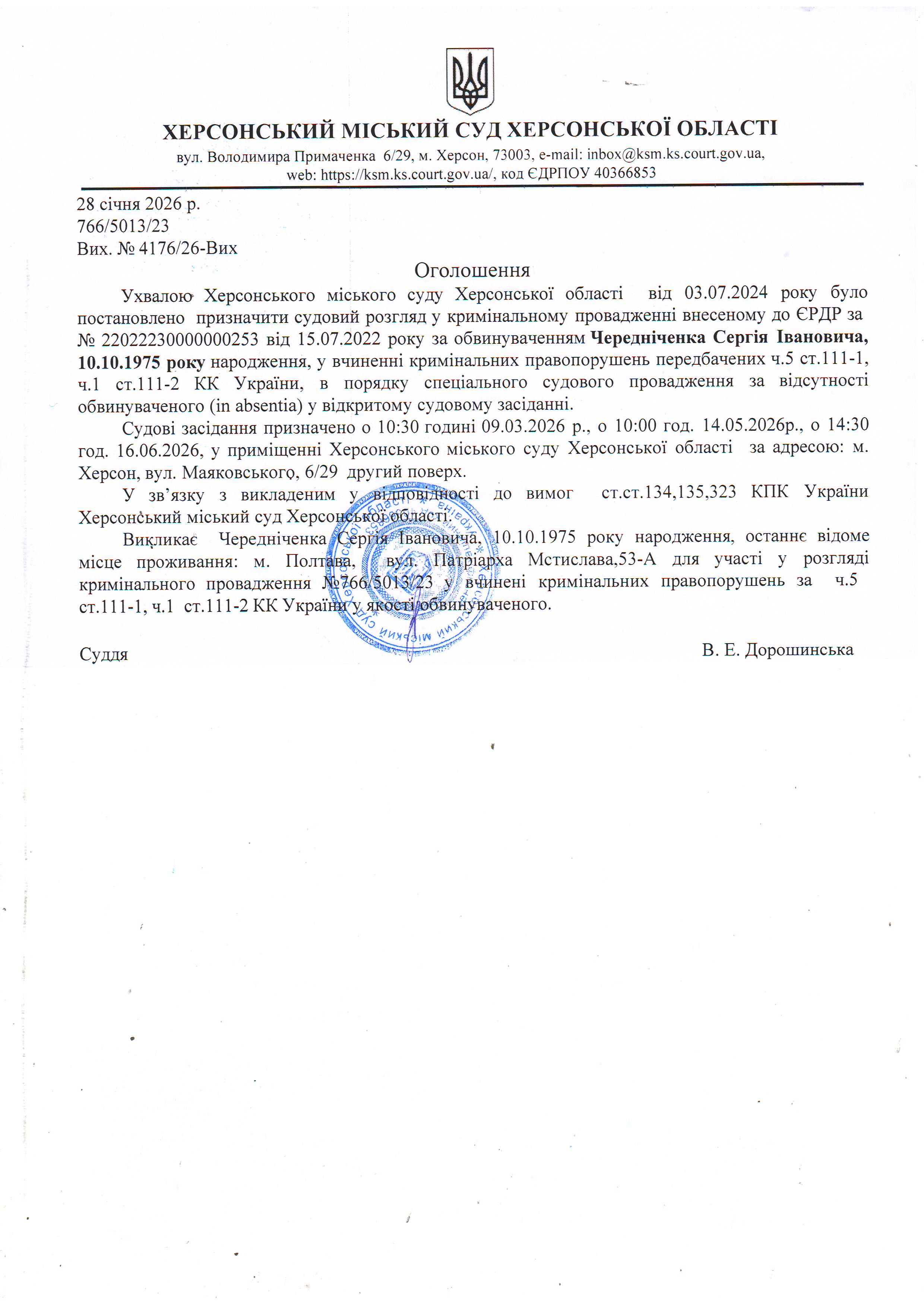 ОГОЛОШЕННЯ ПРО ВИКЛИК ДО СУДУ