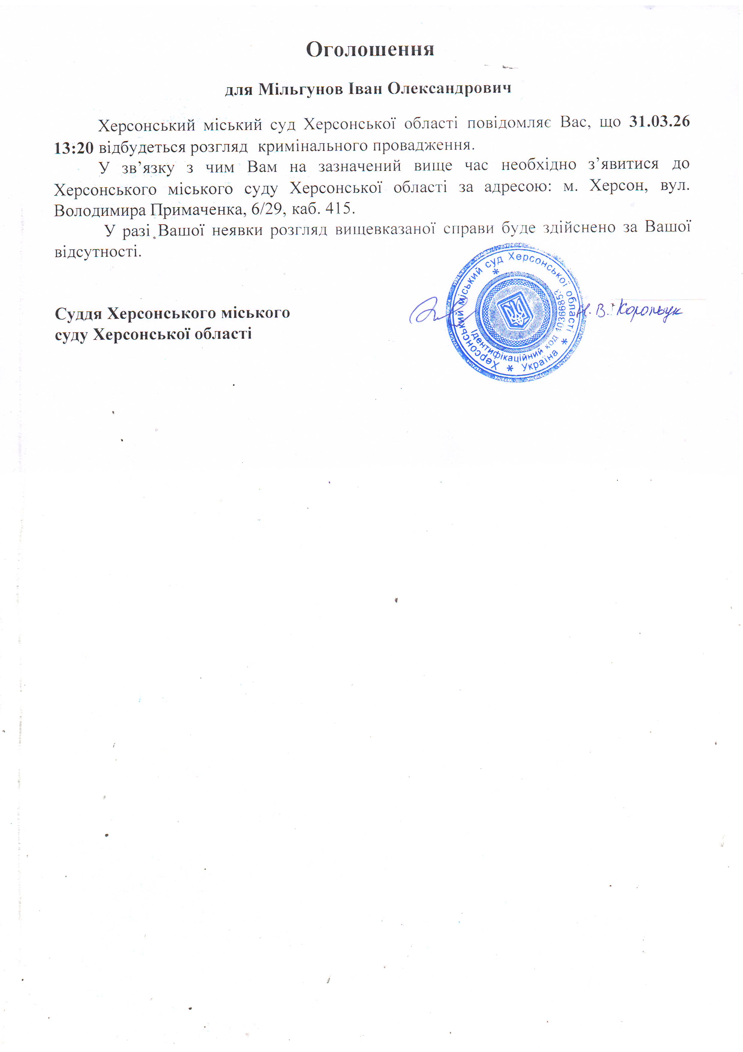 ОГОЛОШЕННЯ ПРО ВИКЛИК ДО СУДУ