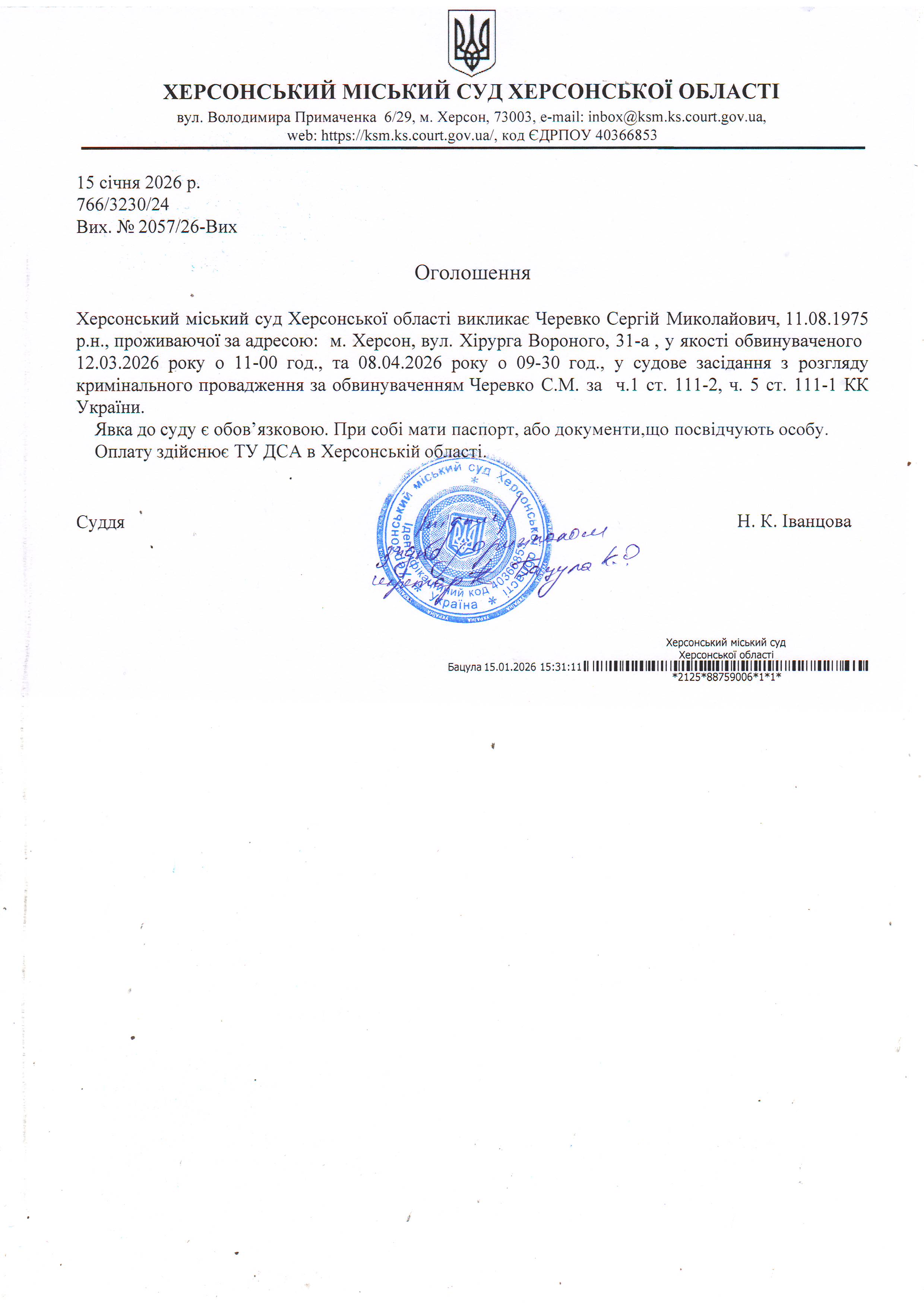 ОГОЛОШЕННЯ ПРО ВИКЛИК ДО СУДУ