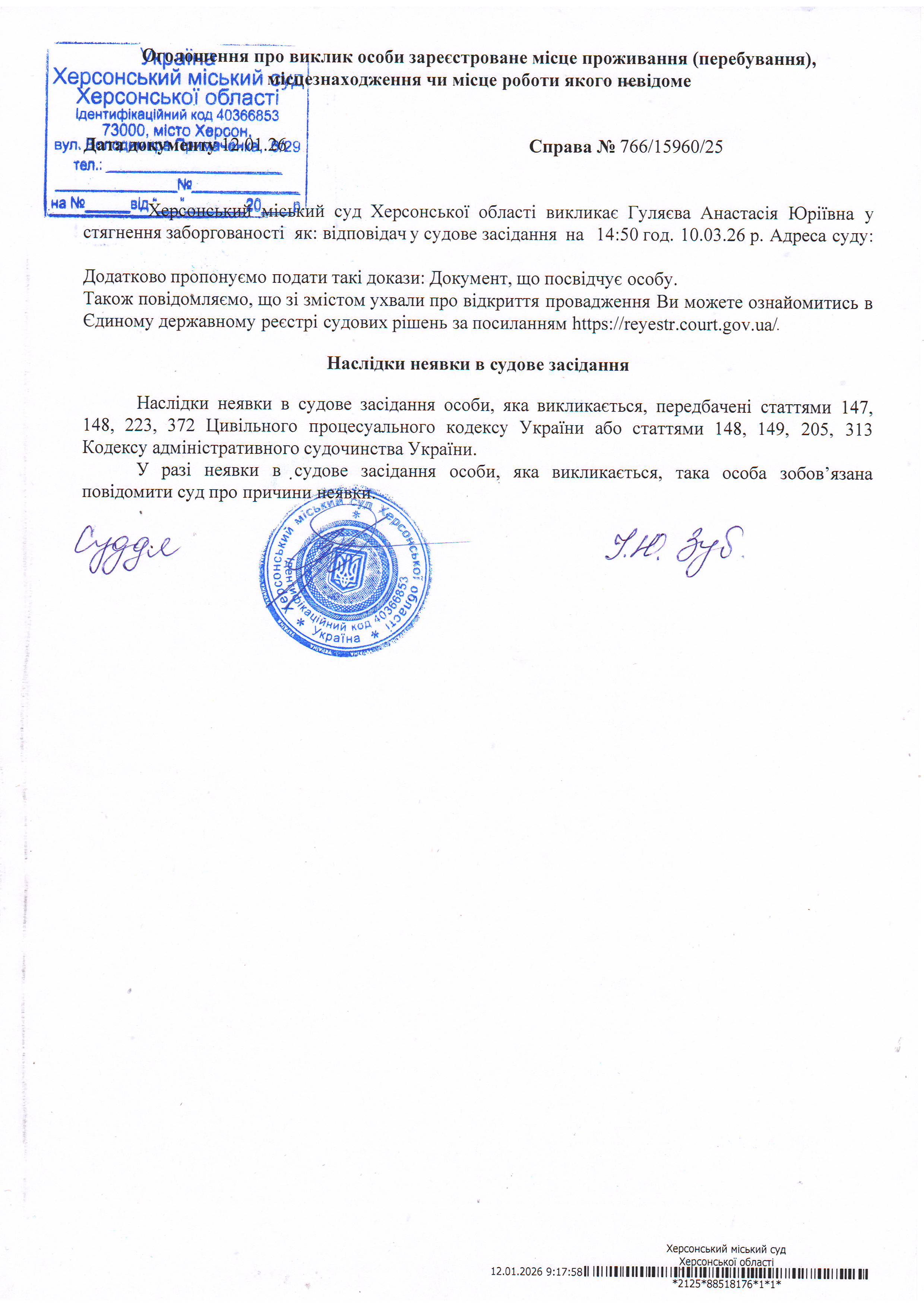 ОГОЛОШЕННЯ ПРО ВИКЛИК ДО СУДУ