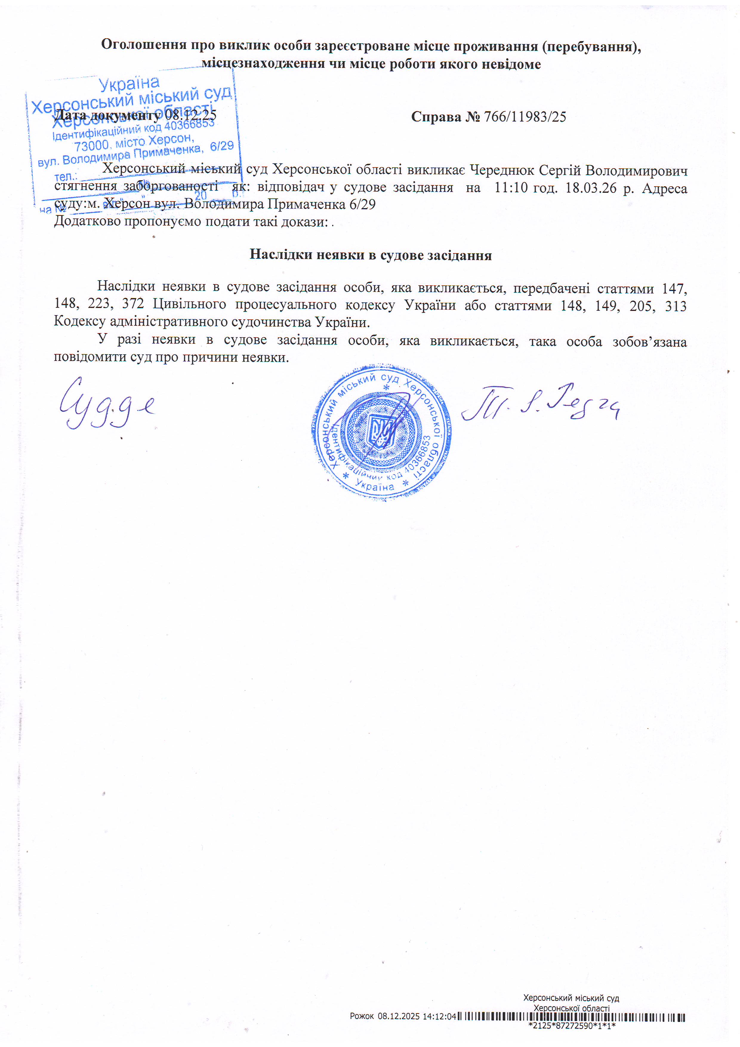 ОГОЛОШЕННЯ ПРО ВИКЛИК ДО СУДУ