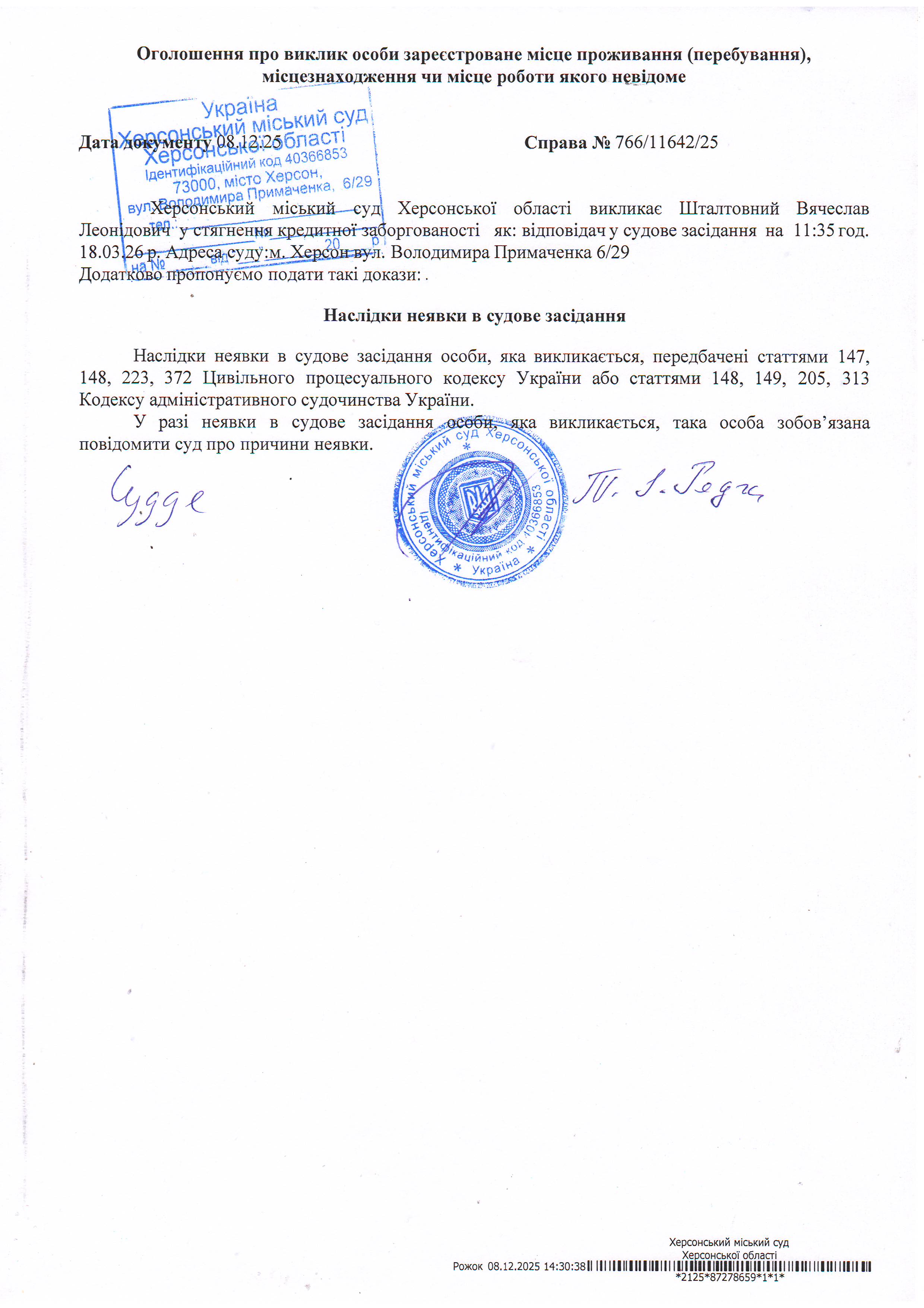 ОГОЛОШЕННЯ ПРО ВИКЛИК ДО СУДУ
