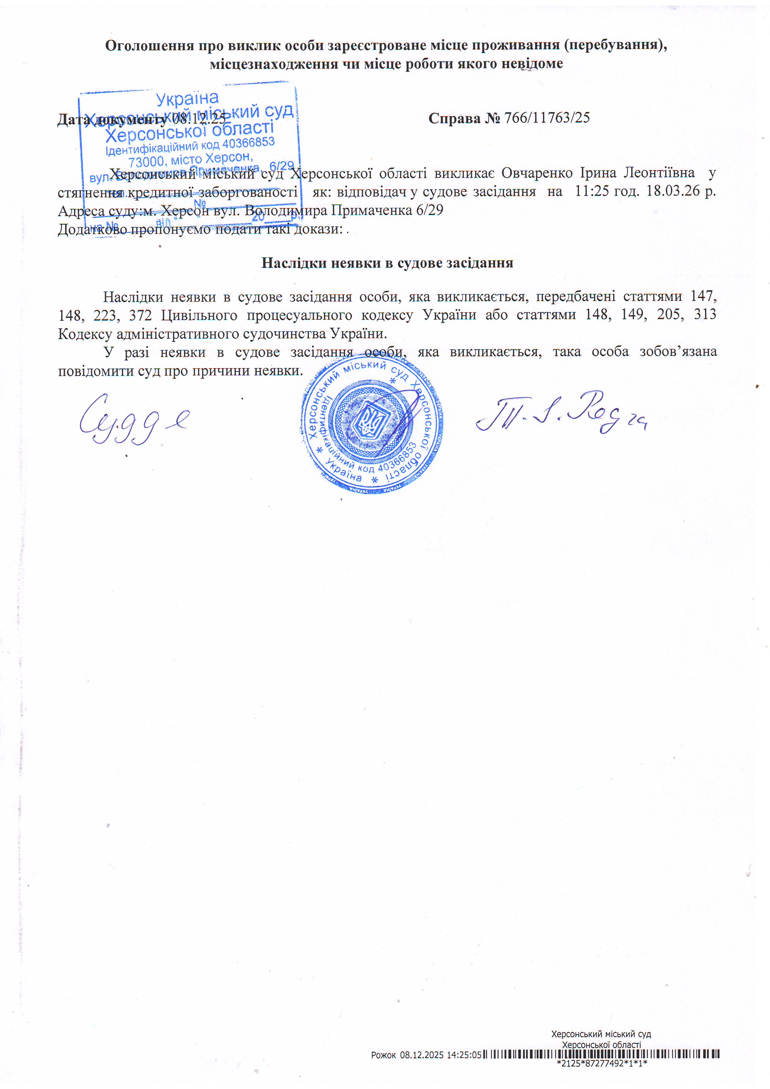ОГОЛОШЕННЯ ПРО ВИКЛИК ДО СУДУ