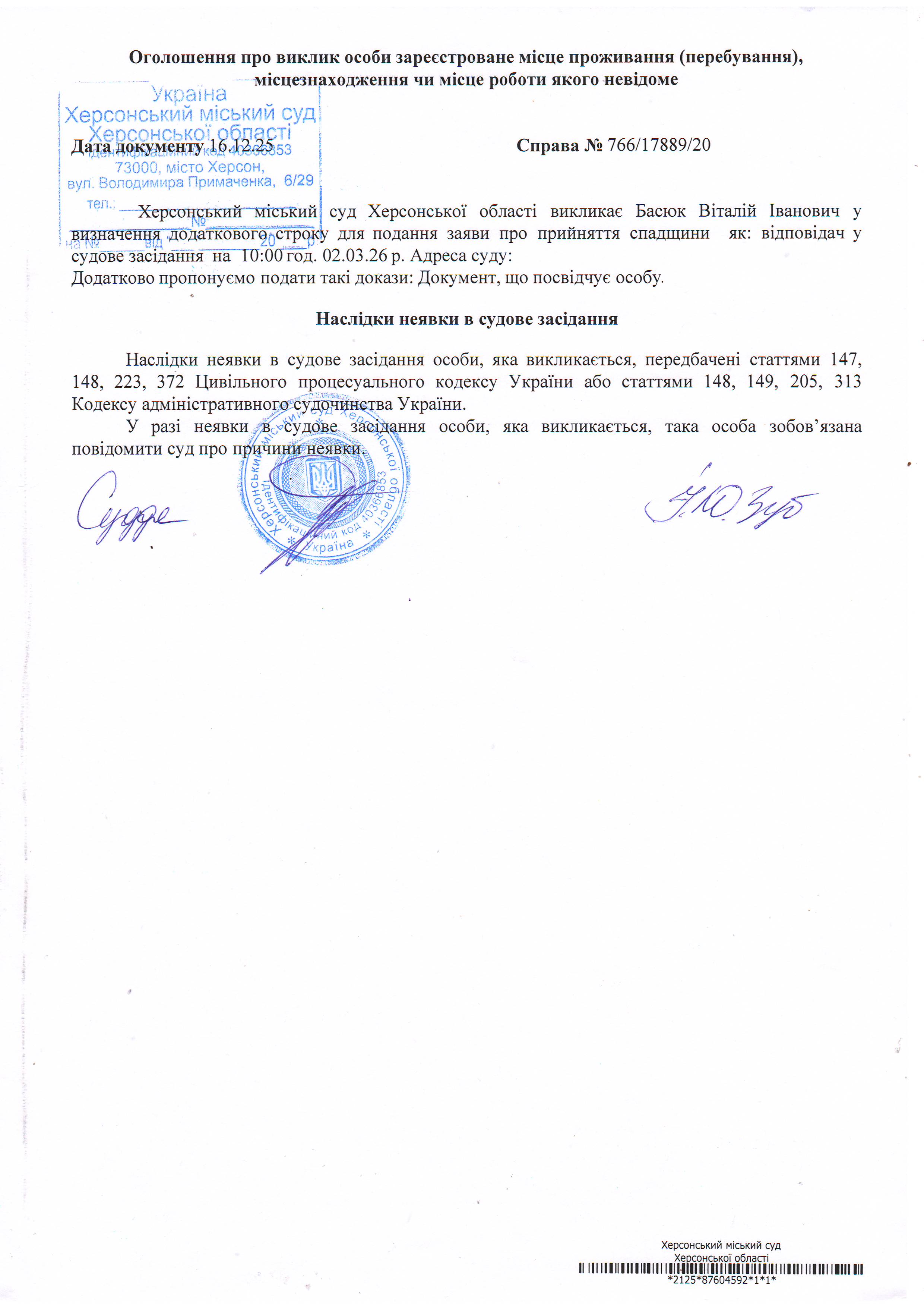 ОГОЛОШЕННЯ ПРО ВИКЛИК ДО СУДУ